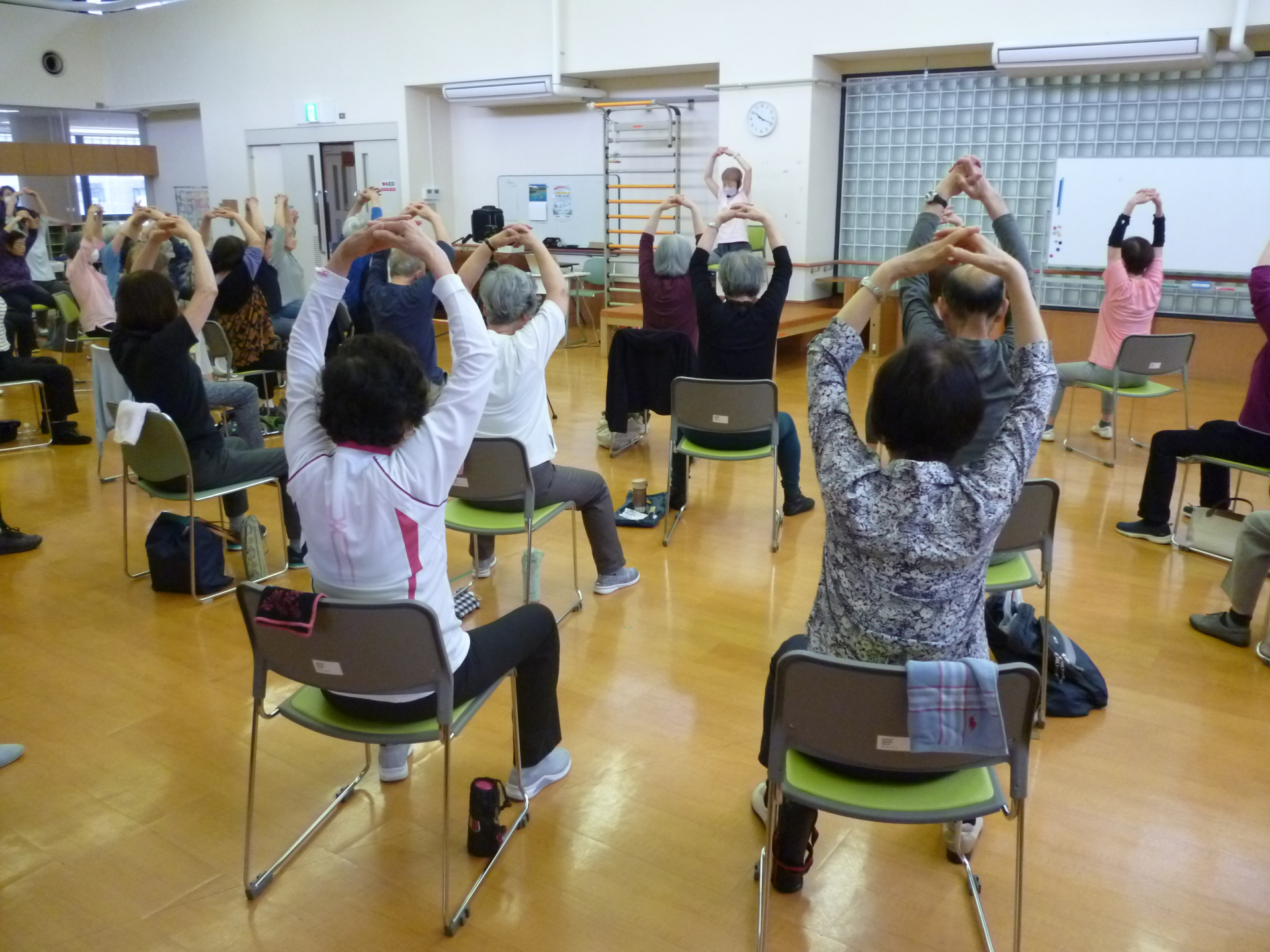 目黒区高齢者センターです。5月12日(月)の午前・午後でトリム体操を実施しました。