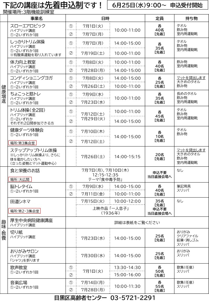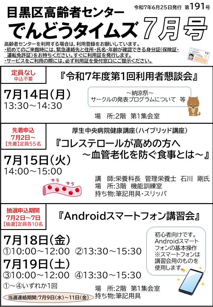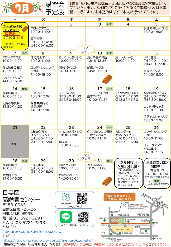 2025.06.23 お知らせ 2025.7月でんどうタイムズを公開いたします。 Tweet シェアする 前の記事 2025.06.23 お知らせ 2025.7月オンライン講座予定表を公開いたします。 次の記事 2025.06.21 お知らせ 【目黒区高齢者センター】トリム体操を開催しました 一覧へ戻る