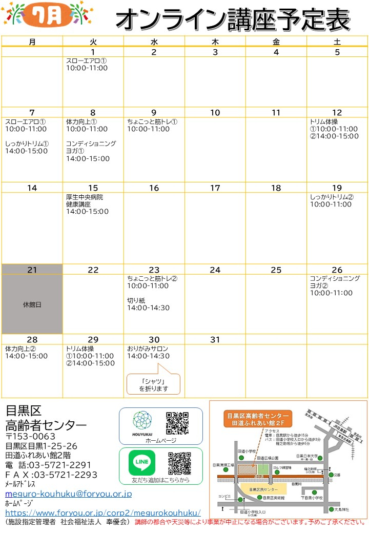 2025.06.23 お知らせ 2025.7月オンライン講座予定表を公開いたします。 Tweet シェアする 前の記事 2025.06.23 お知らせ 【目黒区高齢者センター】健康ダーツ体験会を開催しました 次の記事 2025.06.23 お知らせ 2025.7月でんどうタイムズを公開いたします。 一覧へ戻る