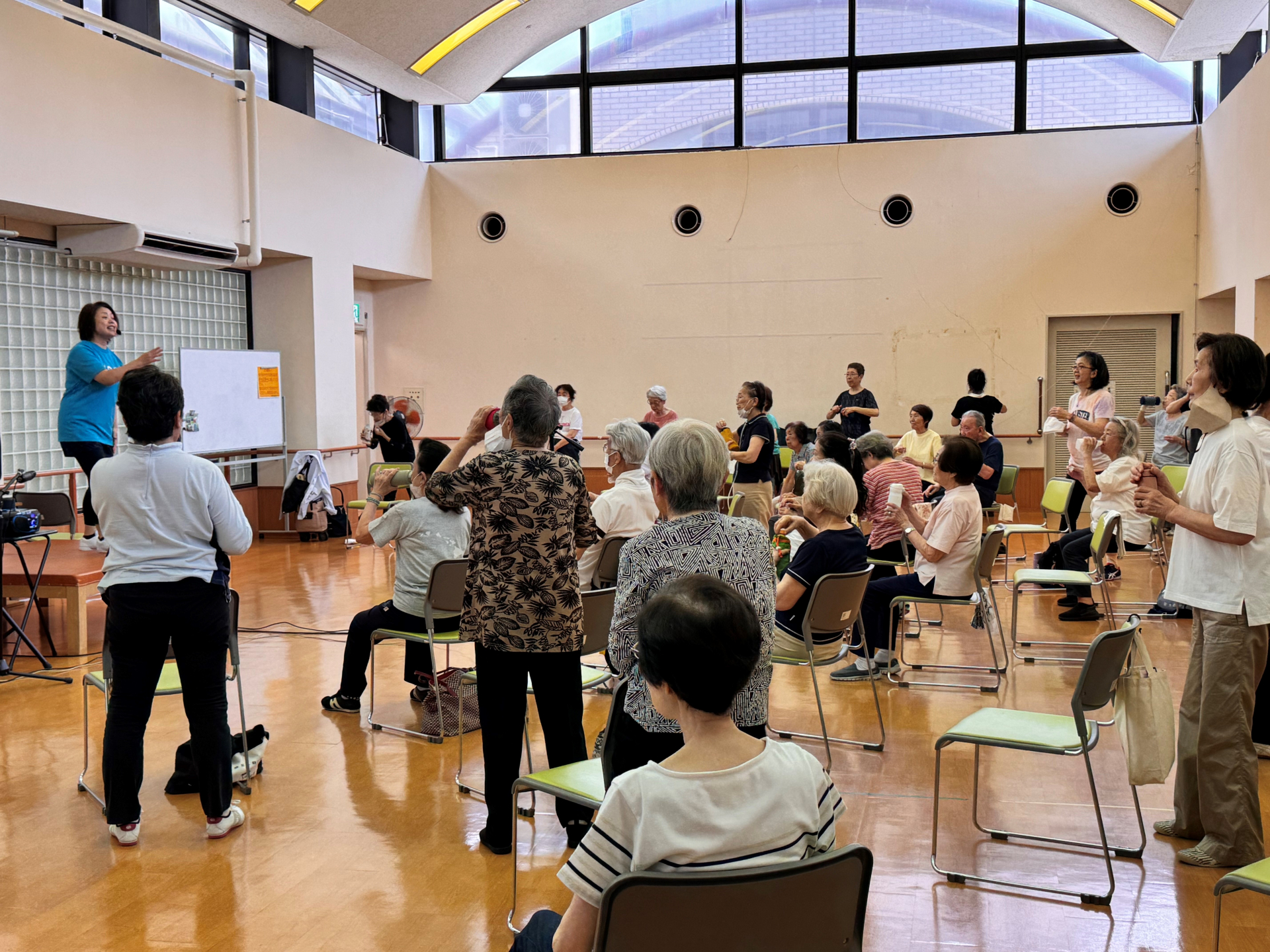 暑さが厳しい時期ということもあり、講座中には講師から「こまめに水分補給をしながら動きましょう」とのお声かけがありました。