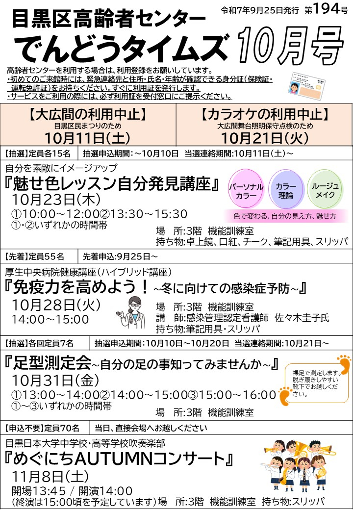 2025.09.22 お知らせ 2025.10月でんどうタイムズを公開いたします。 Tweet シェアする 前の記事 2025.09.22 お知らせ 2025.10月オンライン講座予定表を公開いたします。 次の記事 2025.09.19 お知らせ 【目黒区高齢者センター】「シニア向けパソコン基礎講座」を開催しました 一覧へ戻る