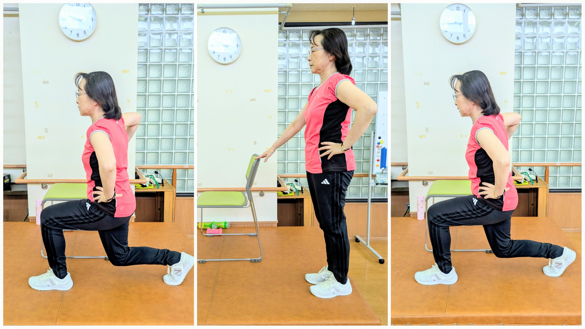 今回はゆっくり4回行いました。姿勢は前かがみにならないように気をつけて行いましょう。