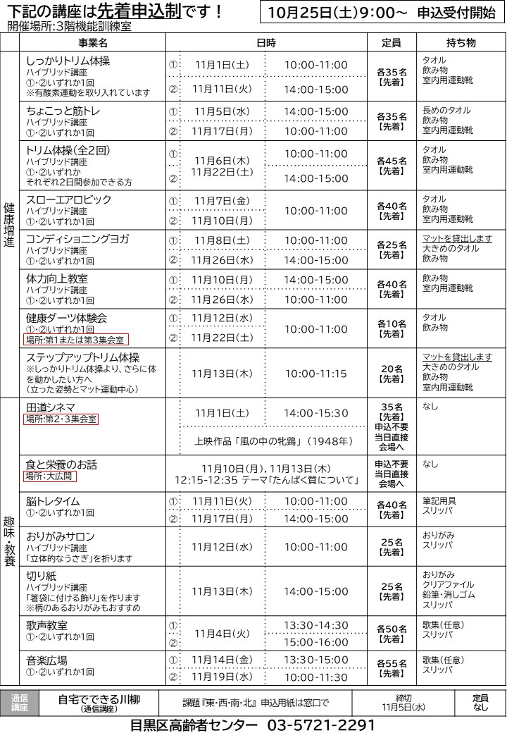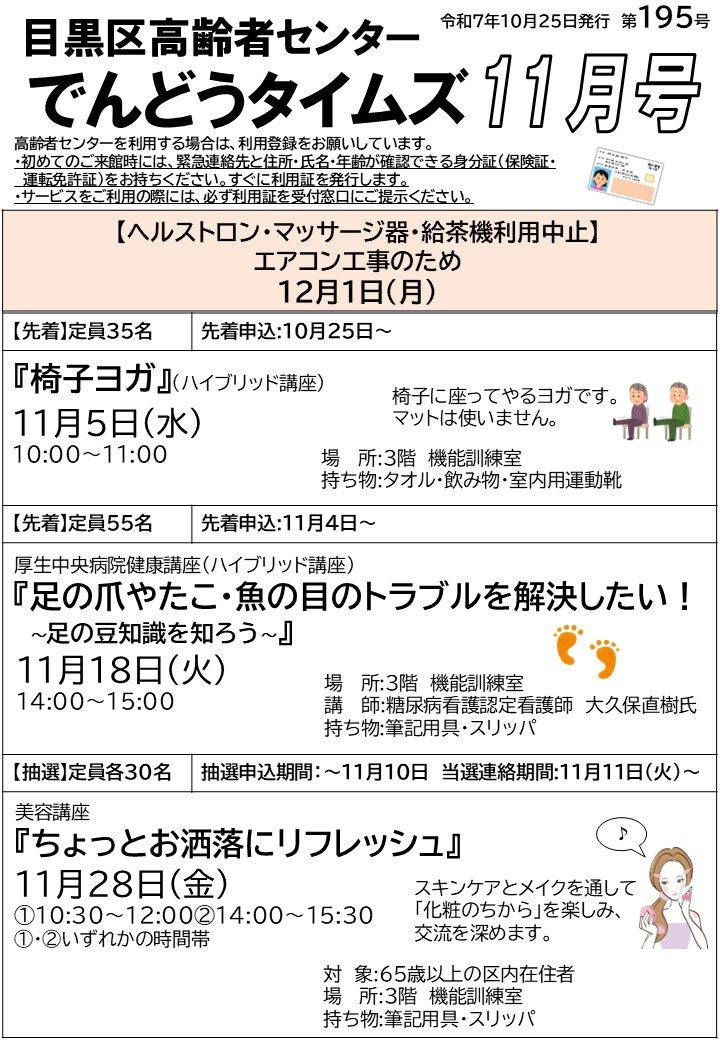 2025.10.23 お知らせ 2025.11月でんどうタイムズを公開いたします。 Tweet シェアする 前の記事 2025.10.23 お知らせ 2025.11月オンライン講座予定表を公開いたします。 次の記事 2025.10.22 お知らせ 【目黒区高齢者センター】「シニア向けパソコン基礎講座」を開催しました 一覧へ戻る