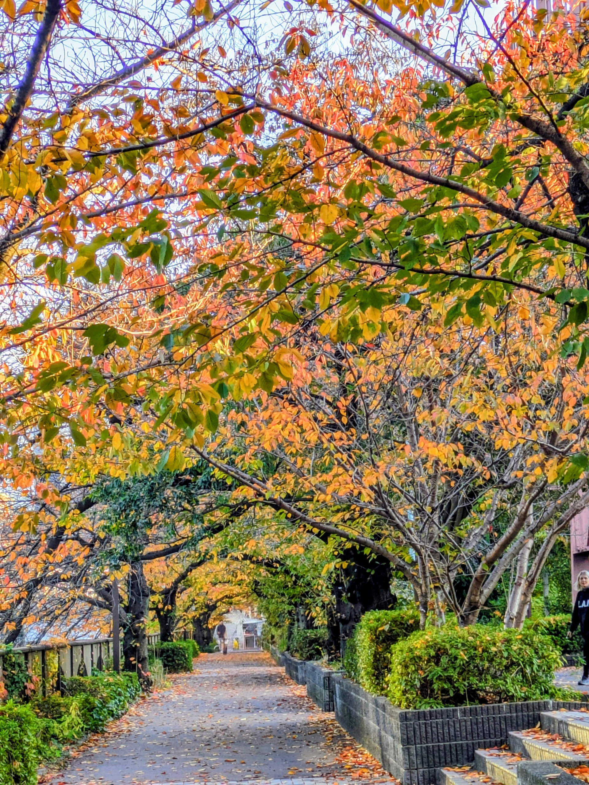 目黒川ですが、区民センターのプールとテニスコートがある川沿いのエリアは桜並木が川に向かって伸びており、まるでトンネルのようなのです!四季折々の表情を見せてくれて穴場スポットです♪