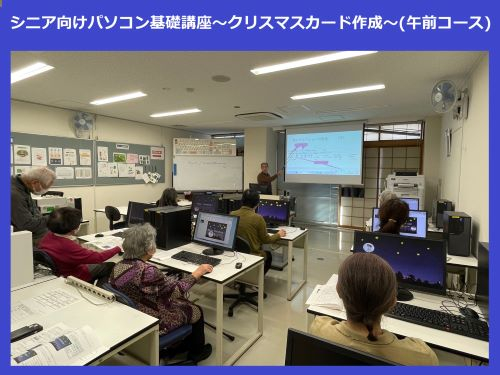 12月17日(水)・18日(木)、シルバー人材センターパソコン教室にて「シニア向けパソコン基礎講座~クリスマスカード作成~」を開催しました。