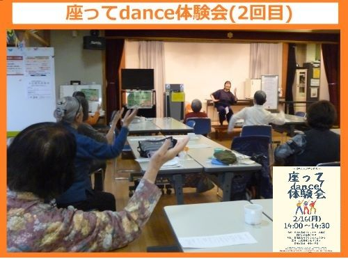 本日の地域交流サロン内において、「座ってdance体験会」を開催しました。先月に引き続き2回目の開催です。