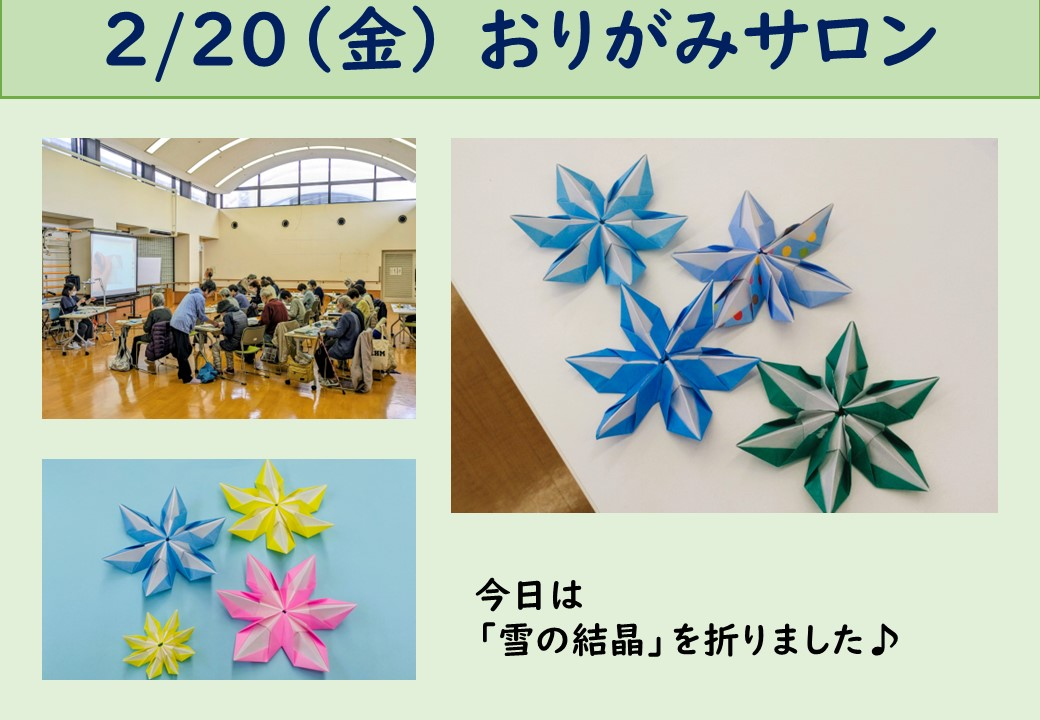 目黒区高齢者センターです。昨日はおりがみサロンで「雪の結晶」を開催しました。