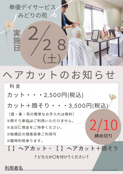 2026.02.04 【みどりデイ】♦1月みどり通信 お知らせ #奉優デイサービスみどりの苑 # 奉優会 #みどり通信 #1月号 2026.02.04 【みどりデイ】節分おやつ~♡ 活動報告 #奉優デイサービスみどりの苑 #奉優会 #おやつ 2026.02.03 【みどりデイ】♦ようこそ♪ 活動報告 2026.02.02 【みどりデイ】2/2水彩絵手紙②☆ 活動報告 #水彩絵手紙 #節分 #奉優デイサービスみどり # 奉優会 2026.02.02 【みどりデイ】1月水彩絵手紙①☆ 活動報告 #水彩絵手紙 #節分 #奉優デイサービスみどりの苑 # 奉優会 2026.01.31 【みどりデイ】♦みんなで体操 活動報告 2026.01.31 【みどりデイ】オカリナ&キーボード演奏会♡ 活動報告 #奉優会 #奉優デイサービスみどりの苑 #オカリナ&キーボード演奏会 2026.01.27 【みどりデイ】♦2月ヘアカットのお知らせ お知らせ #奉優デイサービスみどりの苑 #奉優会 #ヘアカット #2月 2026.01.26 【みどりデイ】1/23スイーツフェア☆ 活動報告 #スイーツ #奉優デイサービスみどりの苑 # 奉優会 #スイーツフェア 2026.01.26 【みどりデイ】1月獅子舞②☆ 活動報告 #獅子舞 #奉優デイサービスみどりの苑 # 奉優会 2026.01.26 【みどりデイ】㋀獅子舞①☆ 活動報告 #獅子舞 #奉優デイサービスみどりの苑 # 奉優会 2026.01.22 【みどりデイ】鬼面作り②☆ 活動報告 # 奉優デイサービスみどりの苑 # 奉優会 #鬼面 #全体製作 2026.01.22 【みどりデイ】鬼面作り①☆ 活動報告 #鬼面 #全体製作 #奉優デイサービスみどりの苑 # 奉優会 2026.01.21 【みどりデイ】1月ヘアカット~☆ 活動報告 #ヘアカット #奉優デイサービスみどりの苑 # 奉優会 2026.01.20 【みどりデイ】1/20火の落語☆ 活動報告 #ヘトベロ落語会 #落語 # 奉優会 #奉優デイサービスみどりの苑 1 2 3 … 49