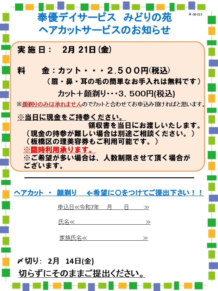 【みどりデイ】2月ヘアカットのお知らせ♪