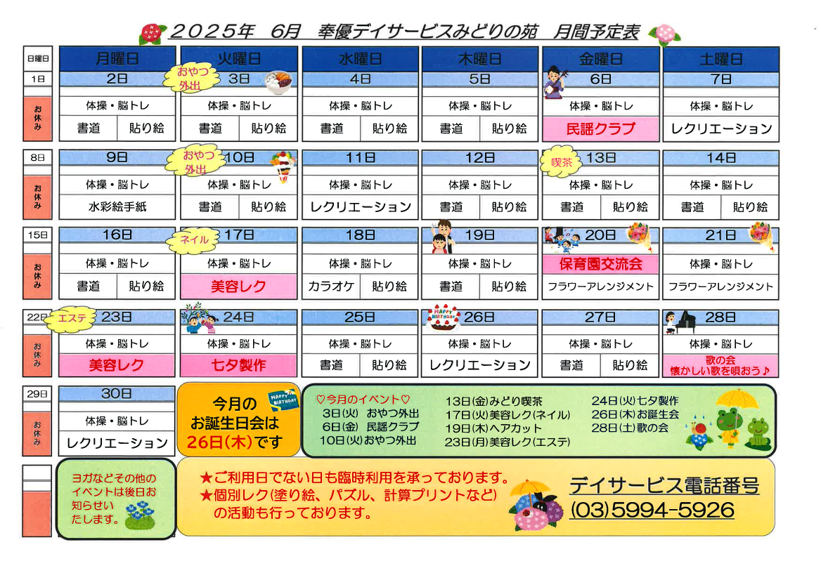 【みどりデイ】6月の月間予定表♪