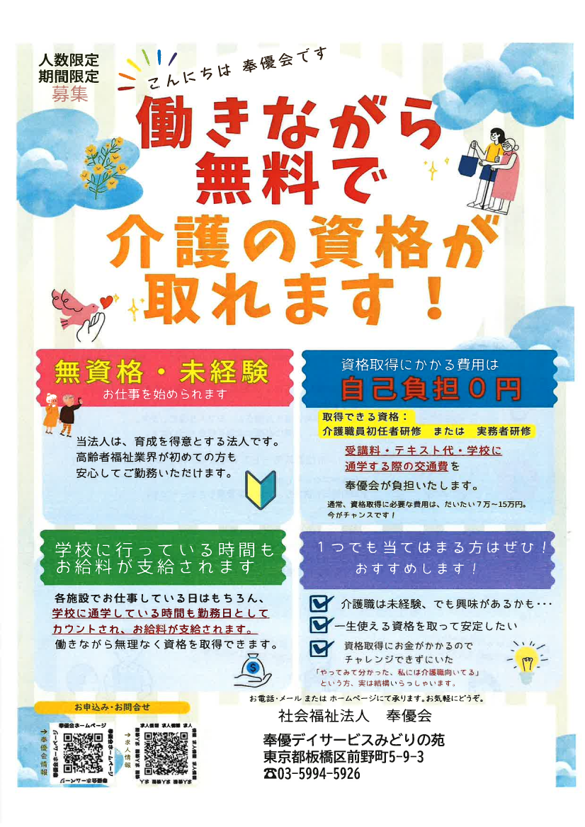 【みどりデイ】お知らせ♪~働きながら資格取得できます~