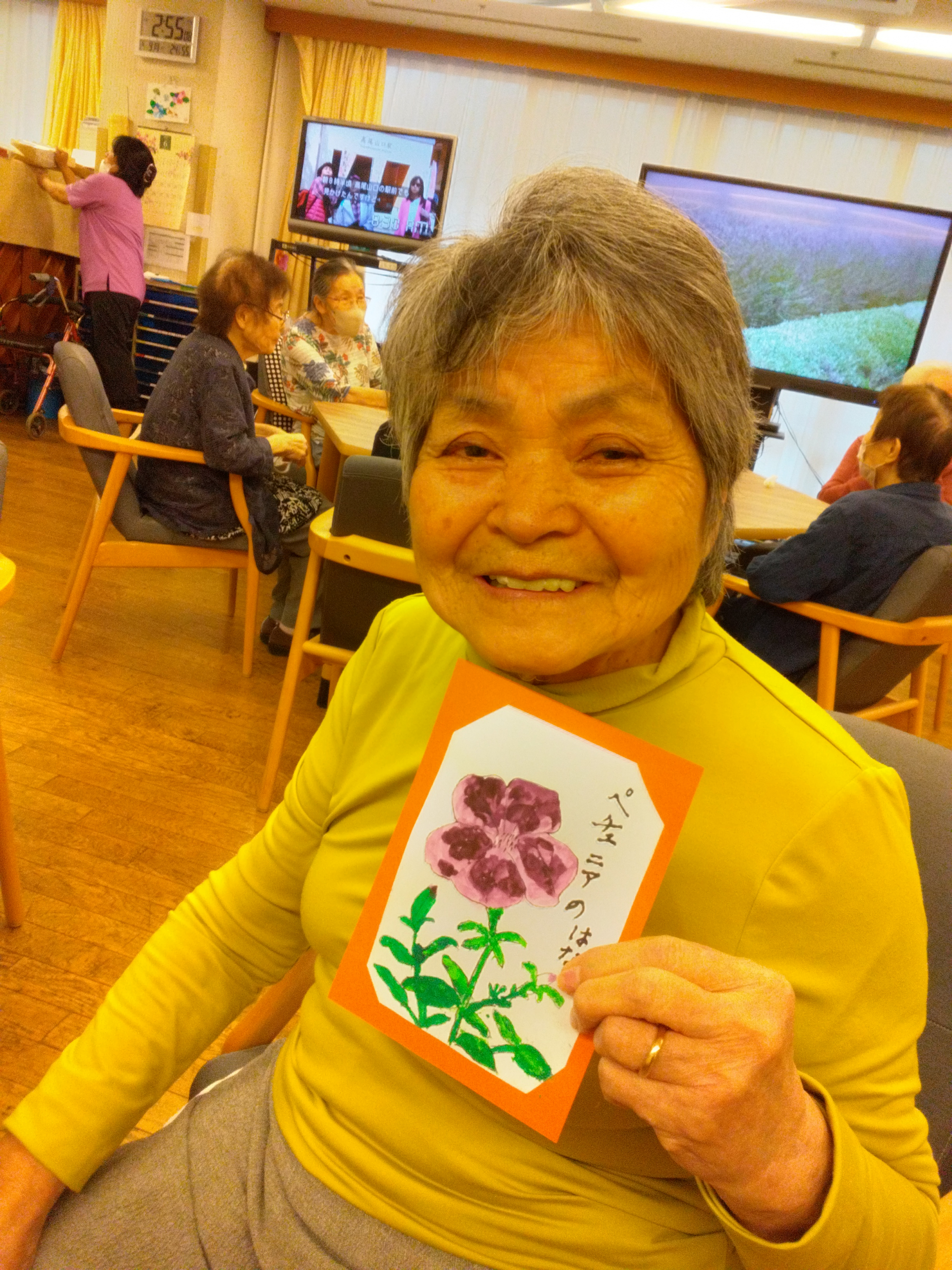 2025.06.14 活動報告 【みどりデイ】水彩絵手紙②♪ Tweet シェアする 皆さまこんにちは! 奉優デイサービスみどりの苑です! 前回の絵手紙の続きです♪ 完成した作品をご紹介します(^^) 次へ続きます♪ みどりデイA.N #奉優会 #奉優デイサービスみどりの苑 #水彩絵手紙 #6月 前の記事 2025.06.14 活動報告 【みどりデイ】水彩絵手紙③♪ 次の記事 2025.06.14 活動報告 【みどりデイ】6月後半献立表♪ 一覧へ戻る
