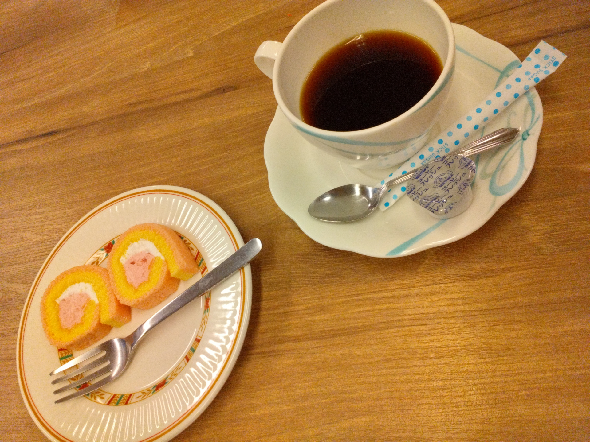 その後はコーヒーといちごロールケーキを召し上がりました♪