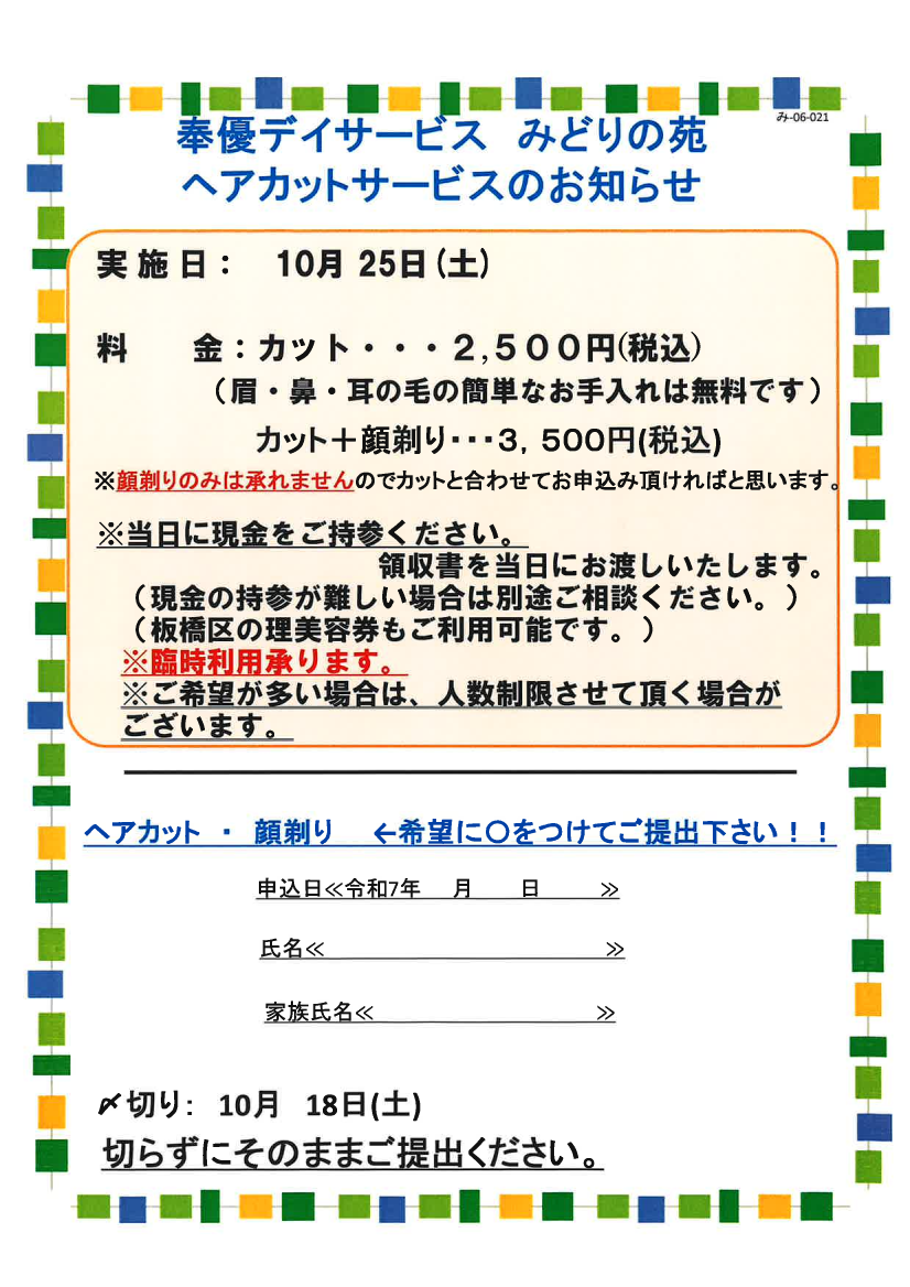 【みどりデイ】10月ヘアカットのお知らせ♪