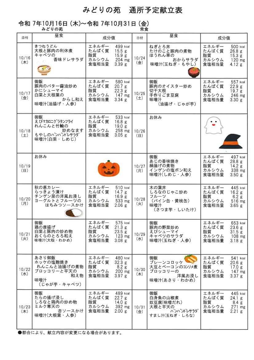 2025.10.09 お知らせ 【みどりデイ】10月後半献立表♪ Tweet シェアする 皆さまこんにちは! 奉優デイサービスみどりの苑です! 10月後半の献立表ができあがりました♪ 本日より皆さまにお配りしております! 秋の味覚を楽しみましょう(^-^) みどりデイA.N #奉優会 #奉優デイサービスみどりの苑 #献立表 前の記事 2025.10.09 お知らせ 【みどりデイ】バーバ喫茶みどり♪ 次の記事 2025.10.08 お知らせ 【みどりデイ】水彩絵手紙③♪ 一覧へ戻る