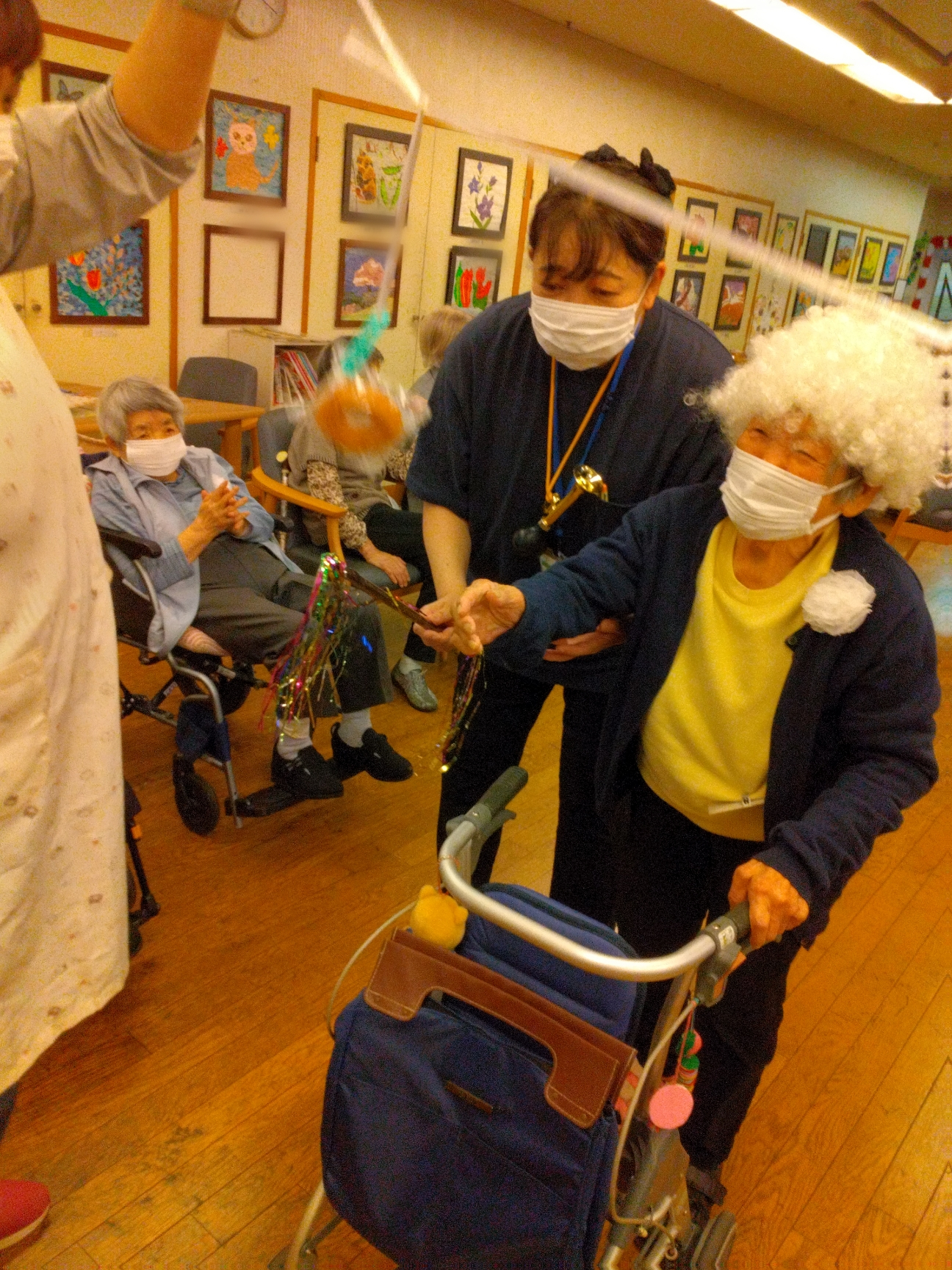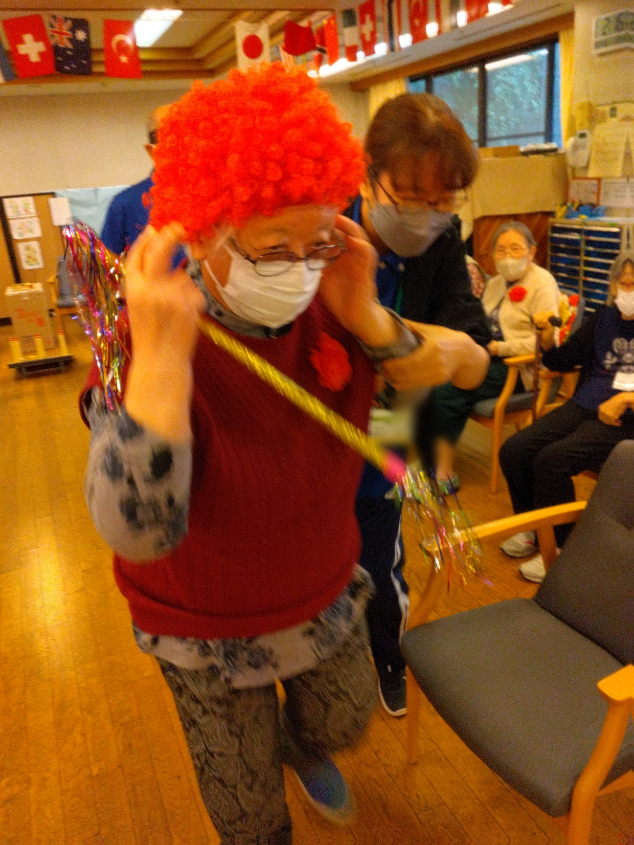 赤組は赤いカツラ!白組は白のカツラをつけてゴールを目指します!