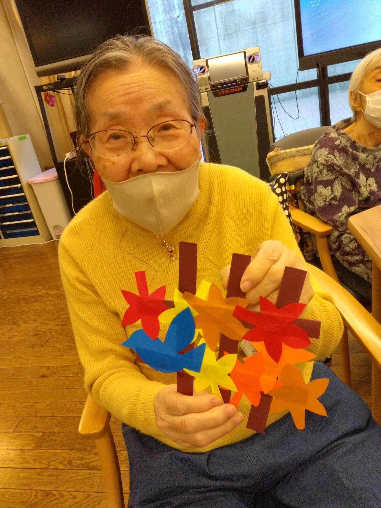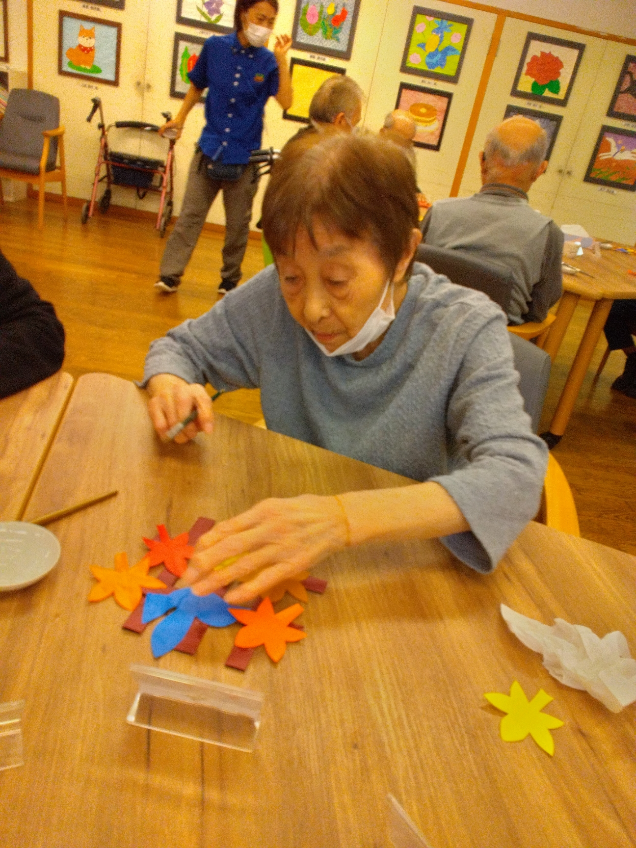 皆さま思い思いの紅葉かざりを作って満足気です♪