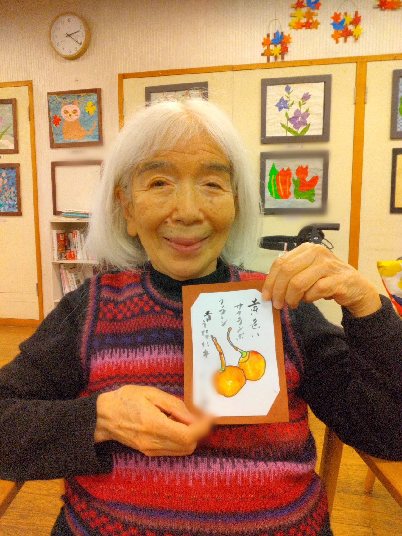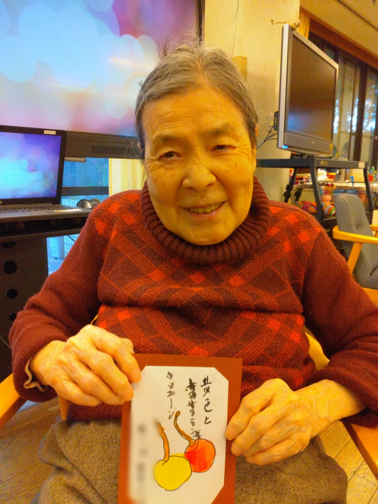 黄色いサクランボの絵手紙を選んで塗ってくださいました~