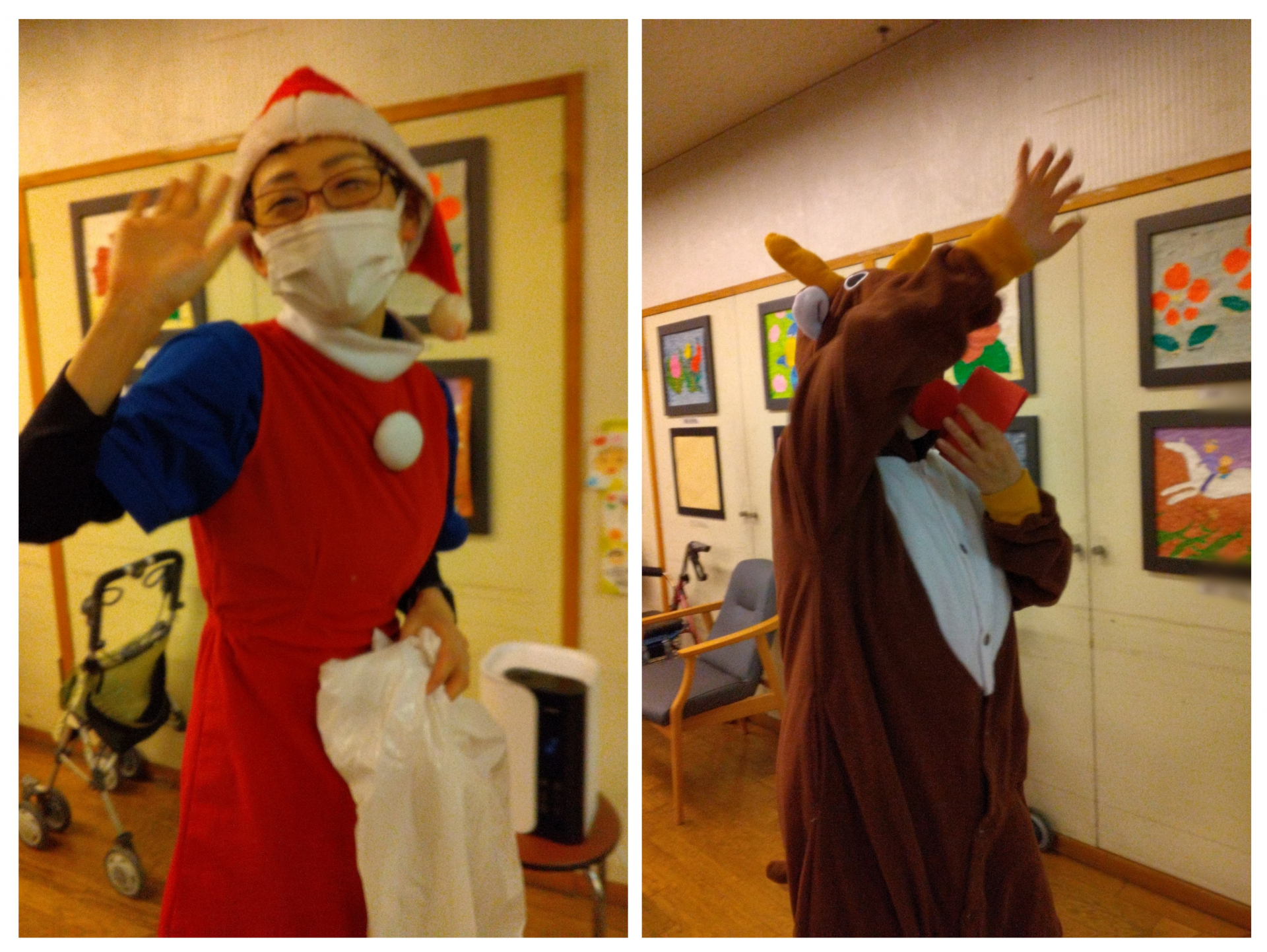 サンタクロースとトナカイに扮したスタッフが皆さんに