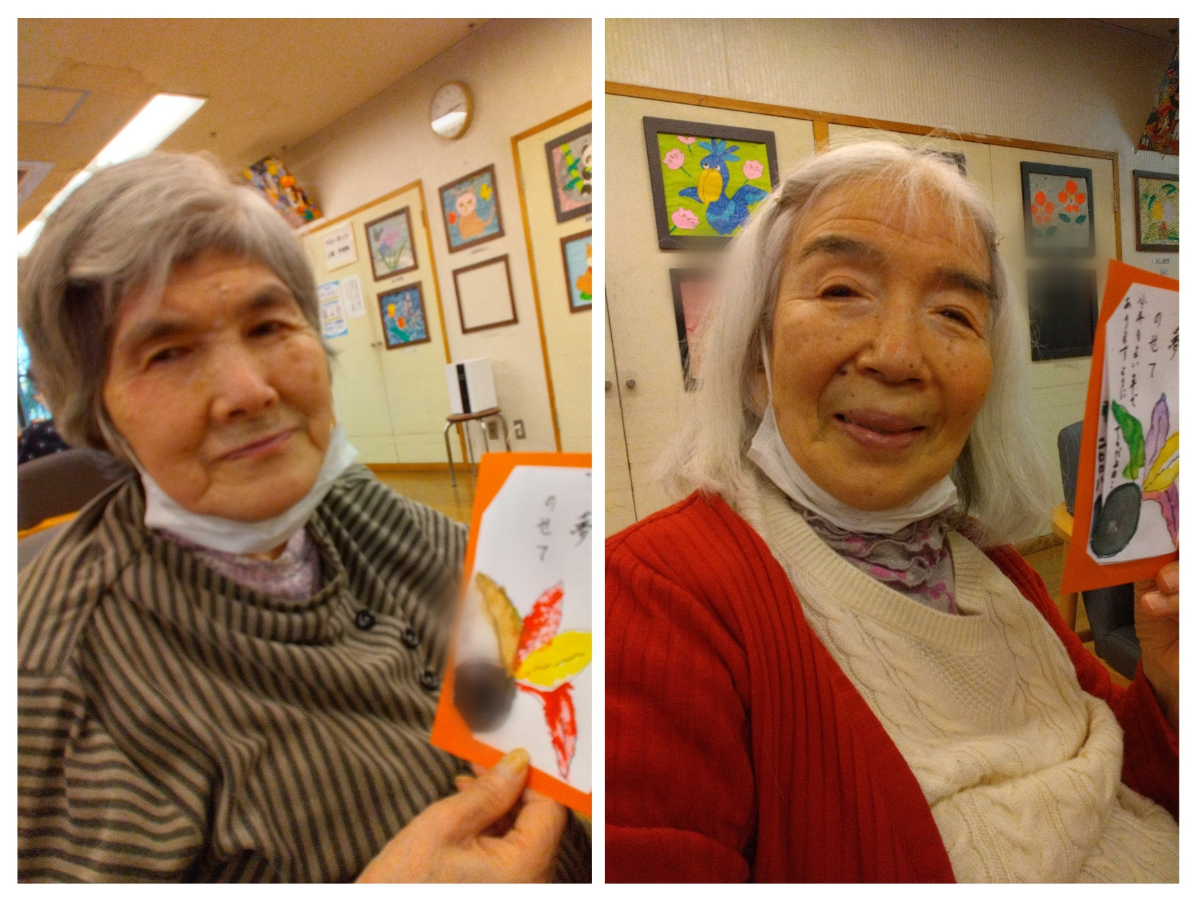 完成した絵手紙はしばらくデイで飾ってから皆さまに