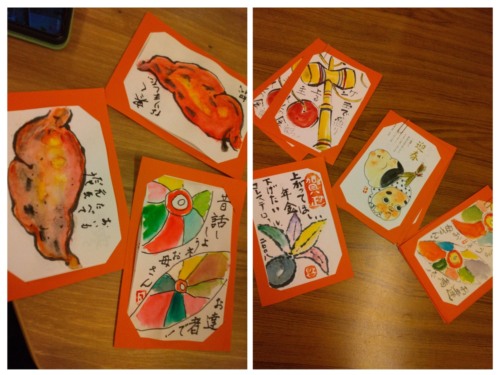 お年賀題材だったり、寒い時期に食べたいお芋、なつかしい子供時代のおもちゃ…
