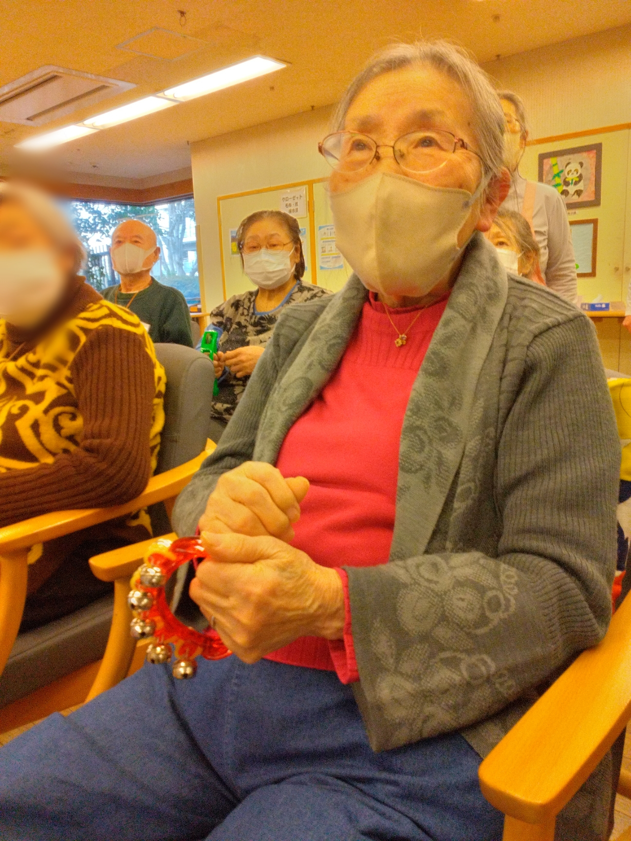 皆さん楽しそうに鈴を先生の合図に合わせて