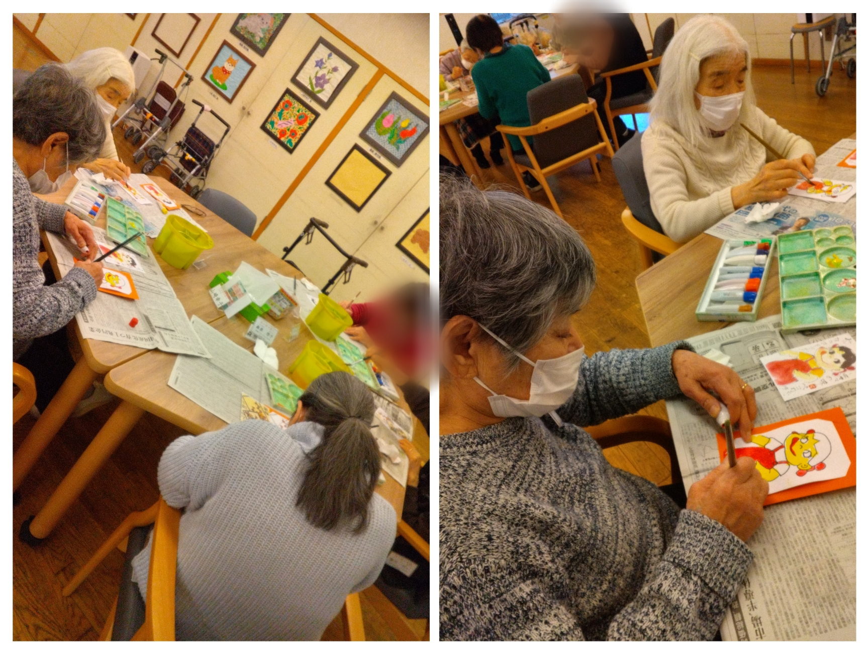 2/2月曜のみどりデイでは水彩絵手紙を皆さんでやりました☆