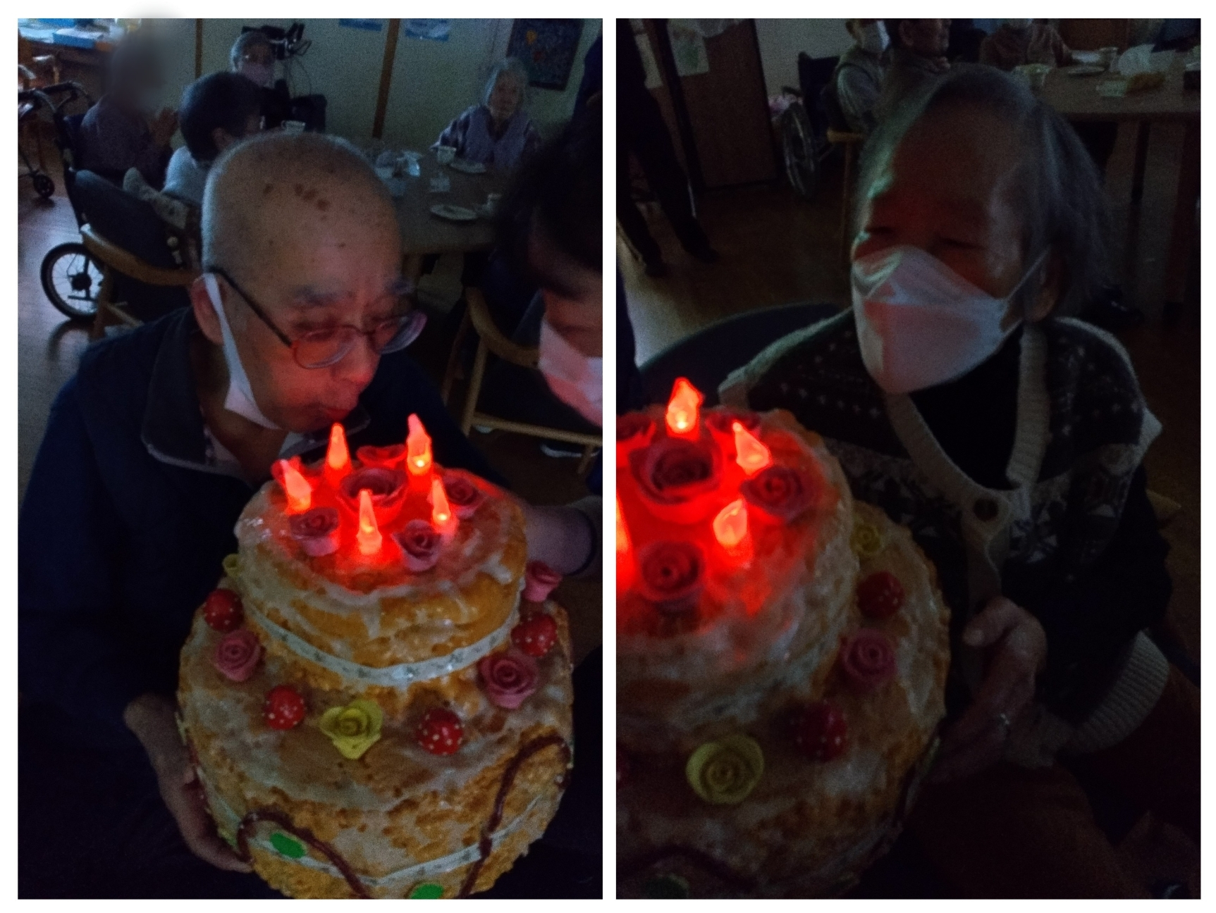 みどりデイ恒例の長生きバースデイケーキのろうそくを吹き消して