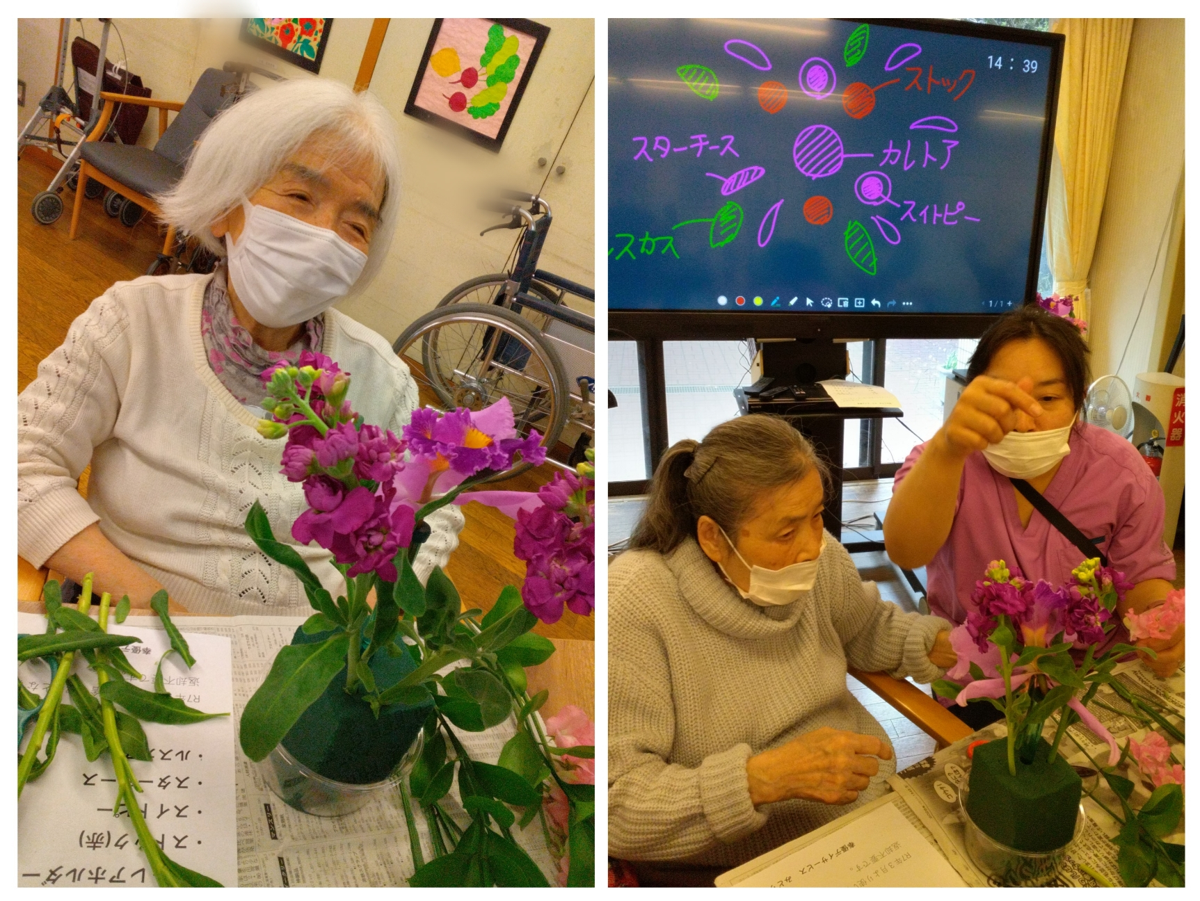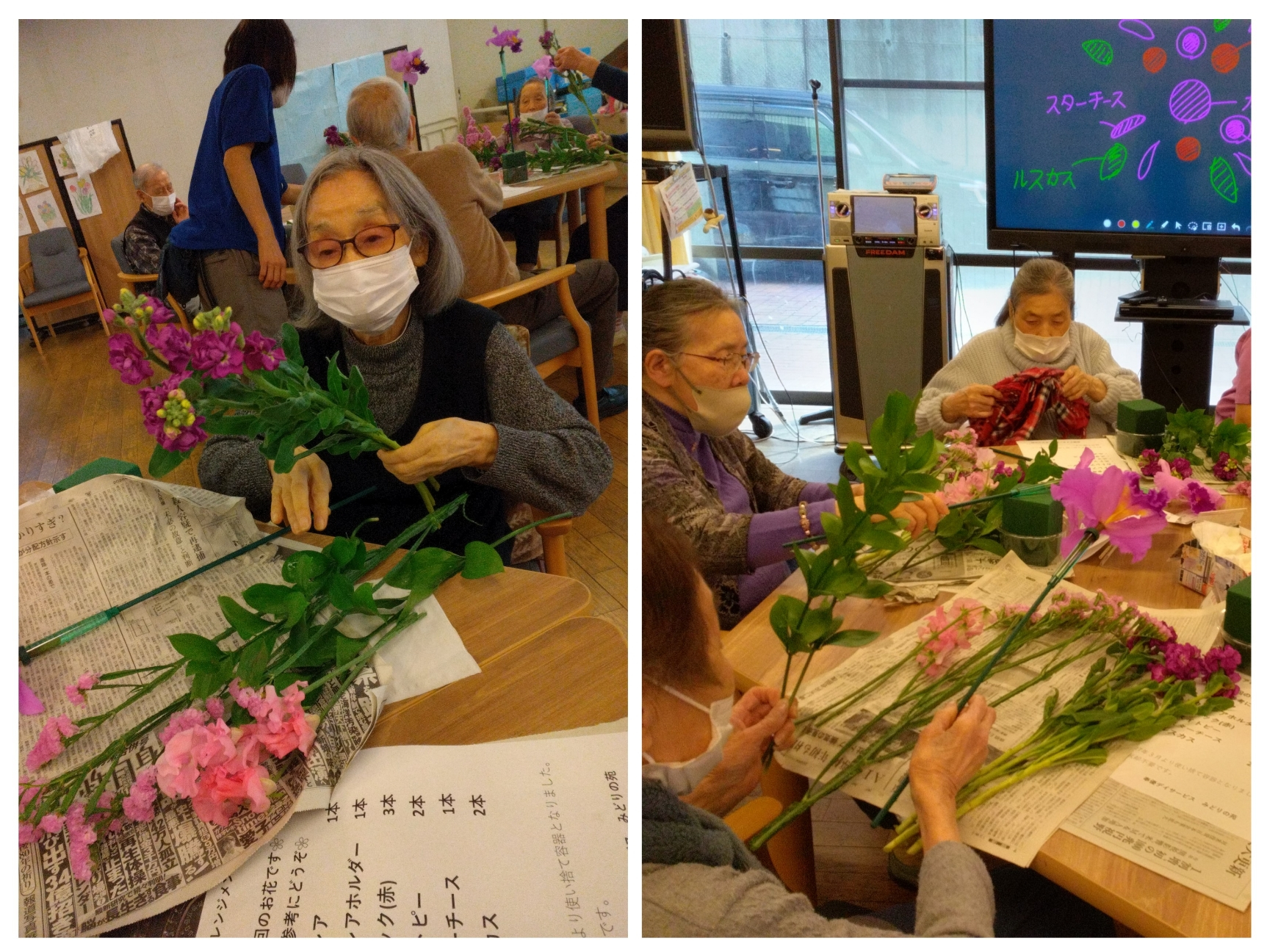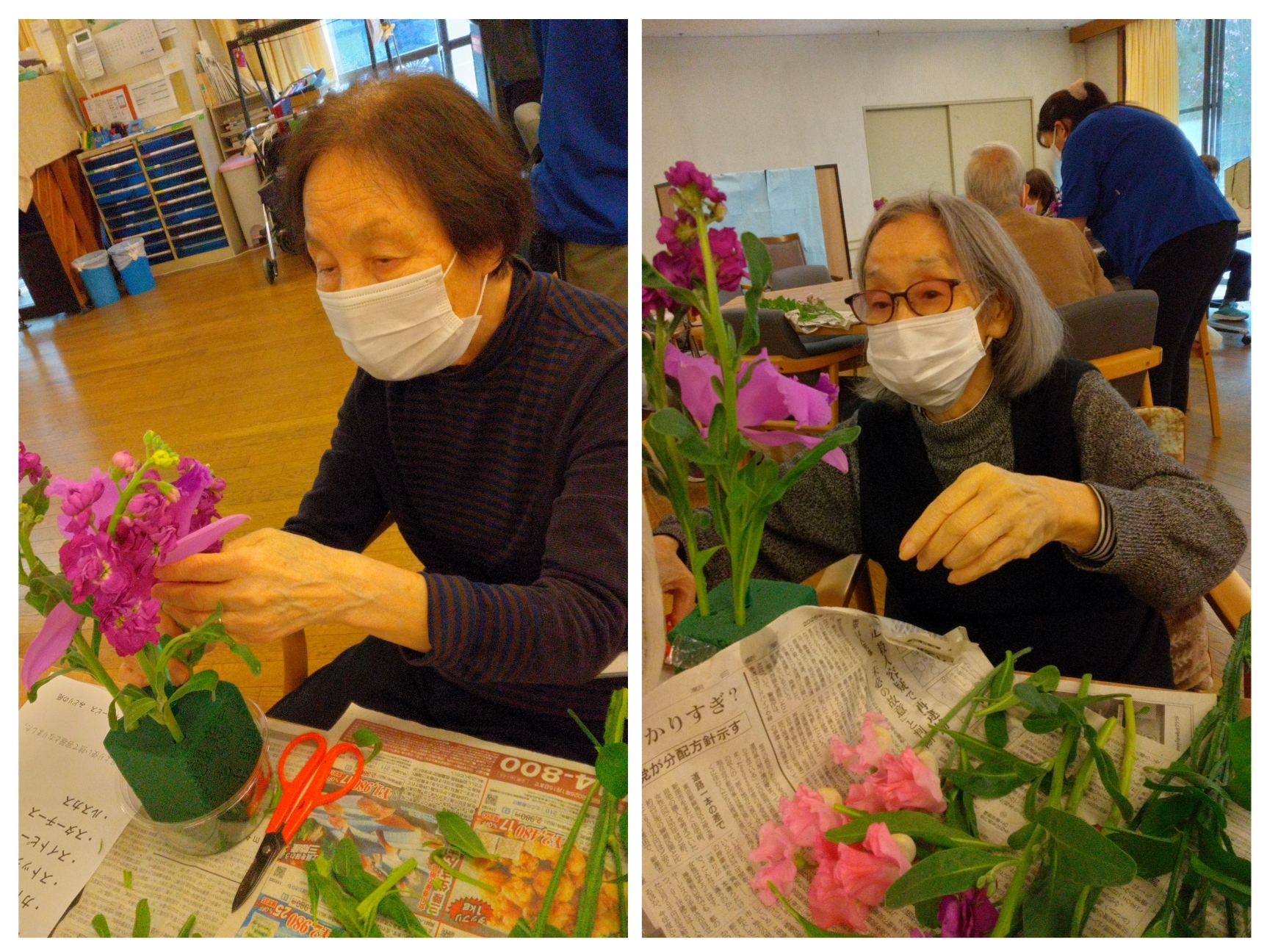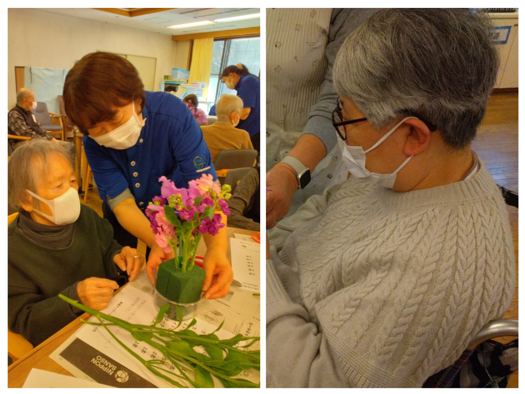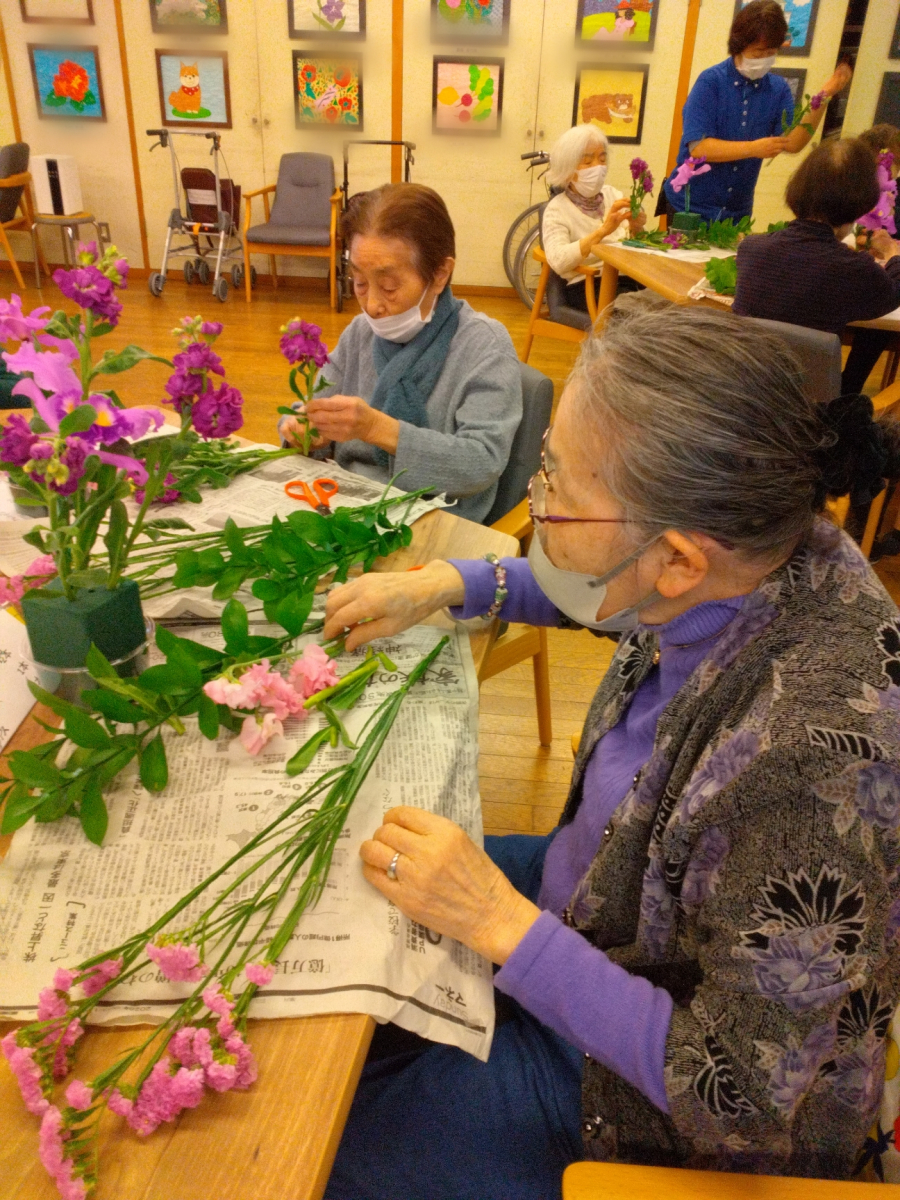 職員たちはお花の長さなど細かく教えて、お手伝いもします。