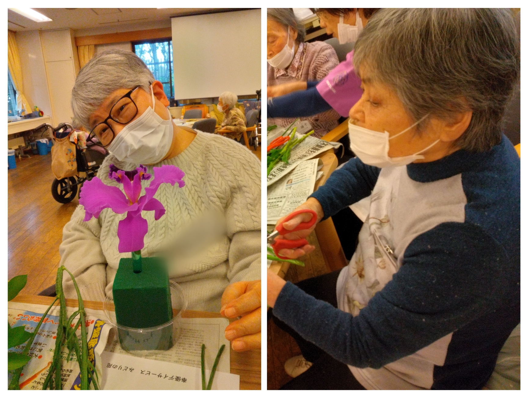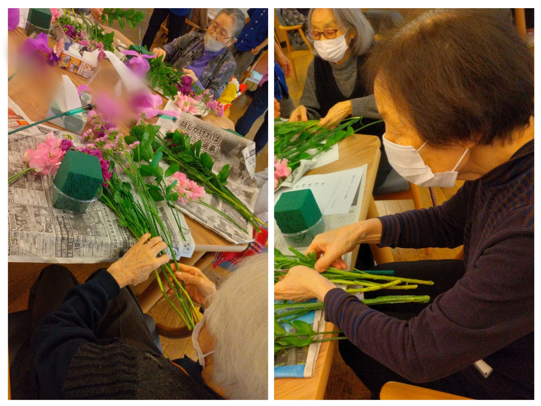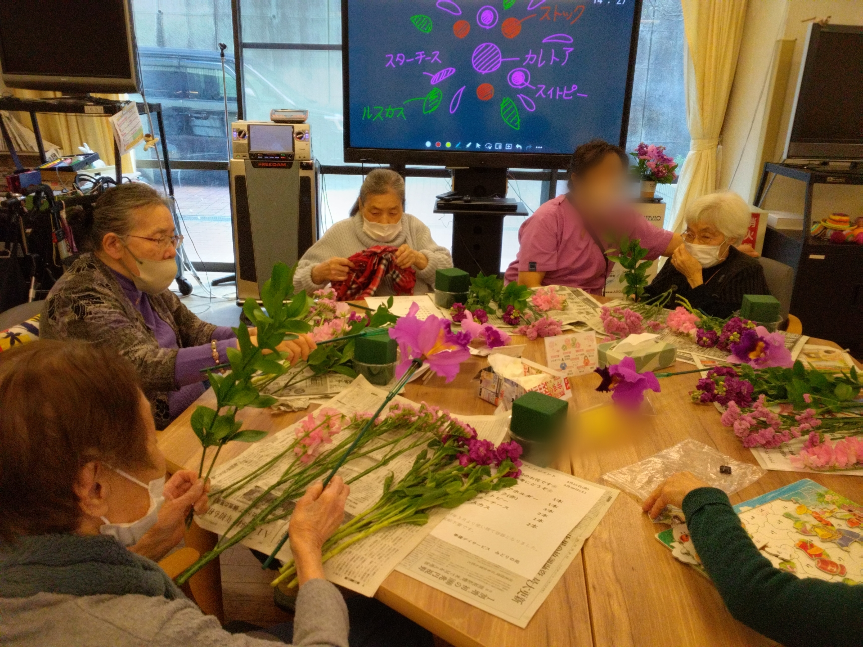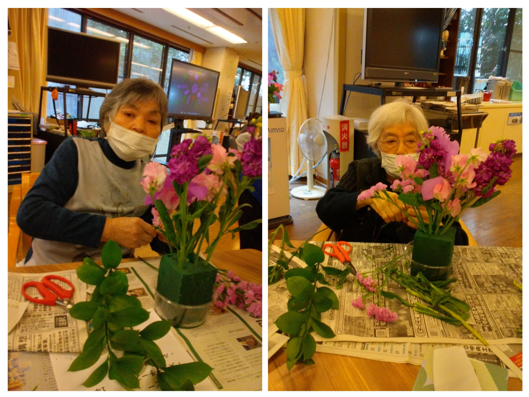 職員たちはお花の長さなど細かく教えて、お手伝いもします。