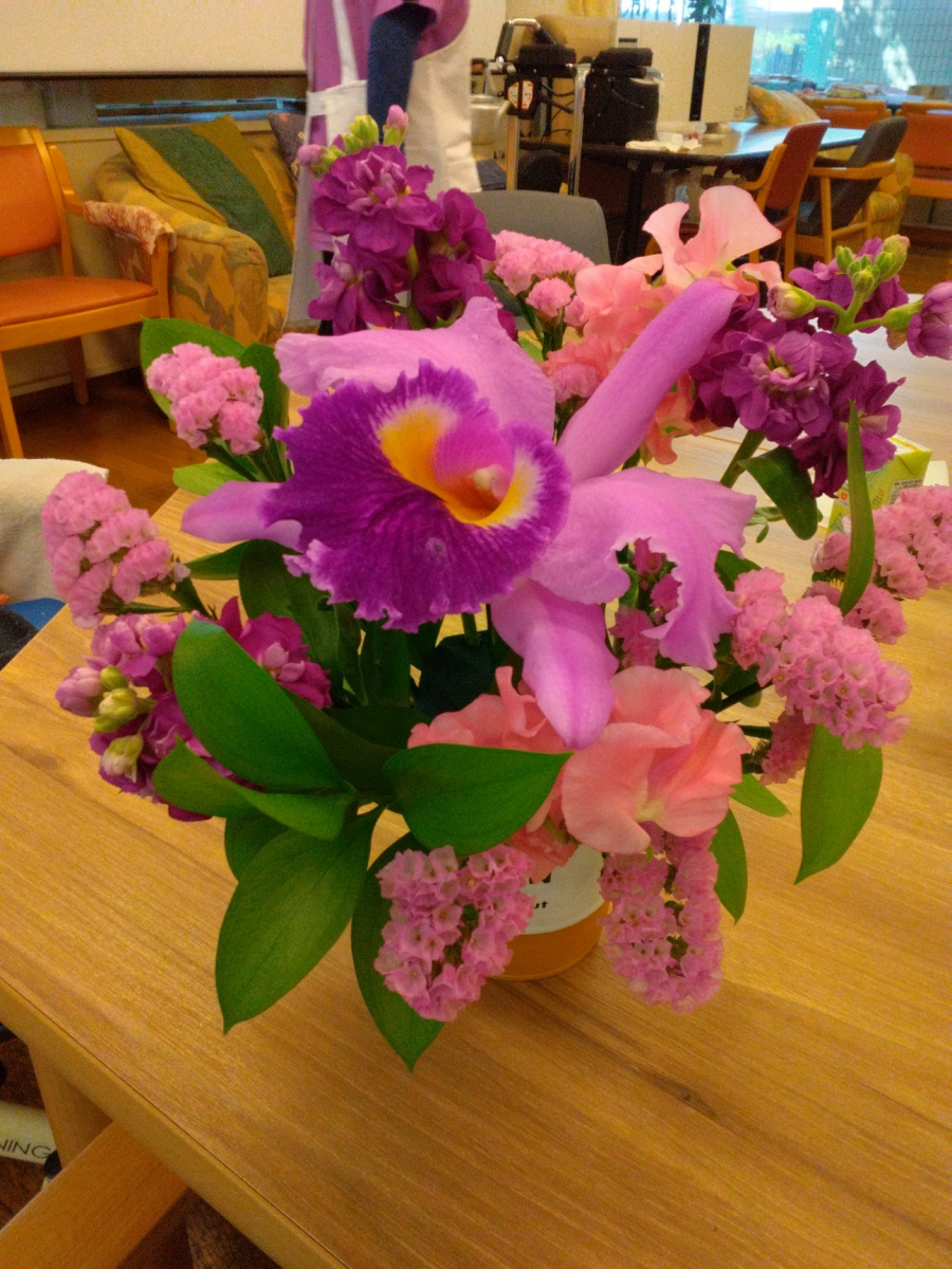 3月はカトレアを使ったピンク色メインの豪華なフラワーアレンジメントでした!
