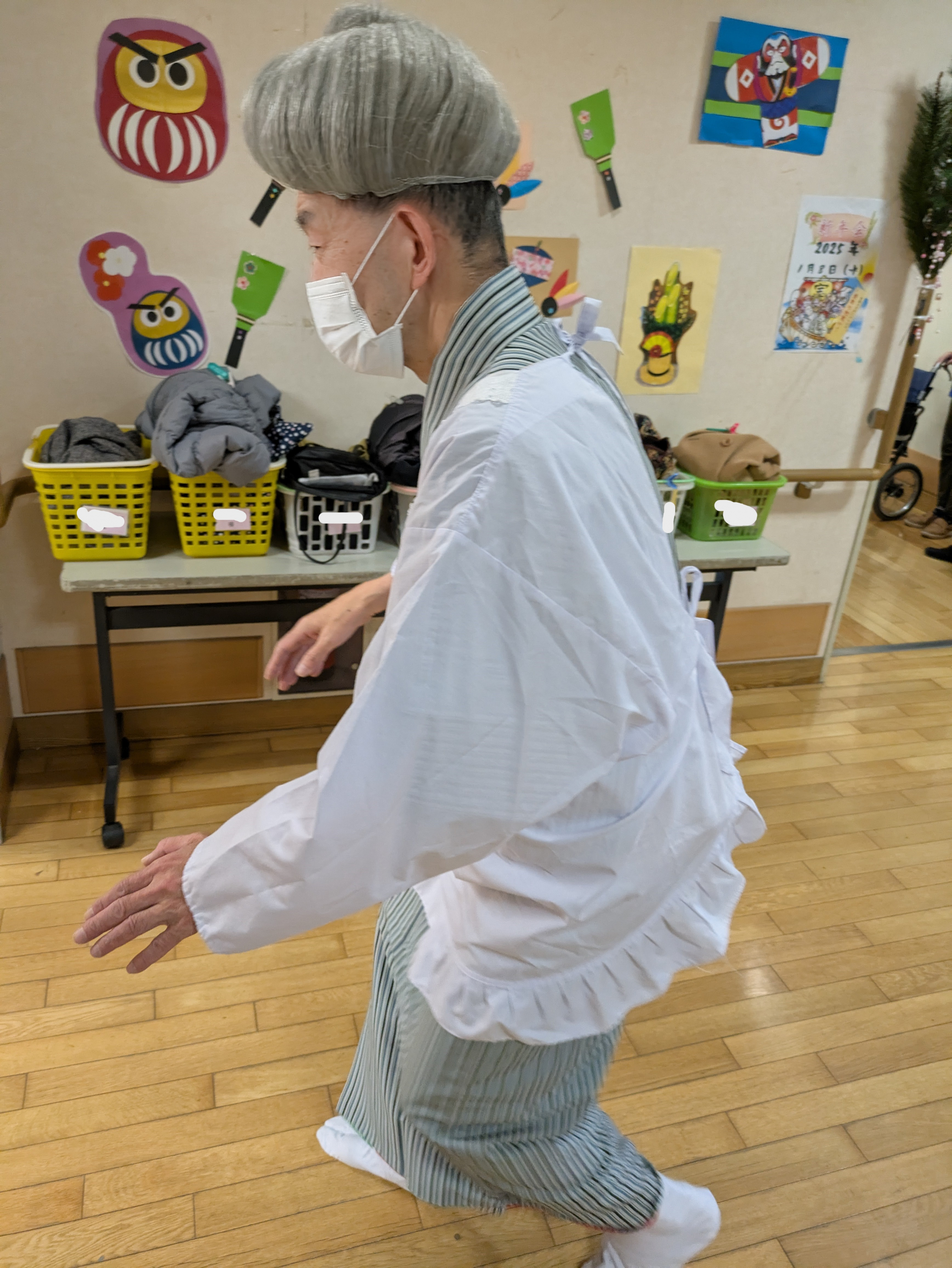 こちらはおばあちゃんの恰好に着替え、次の出番を待つI職員(#^^#)