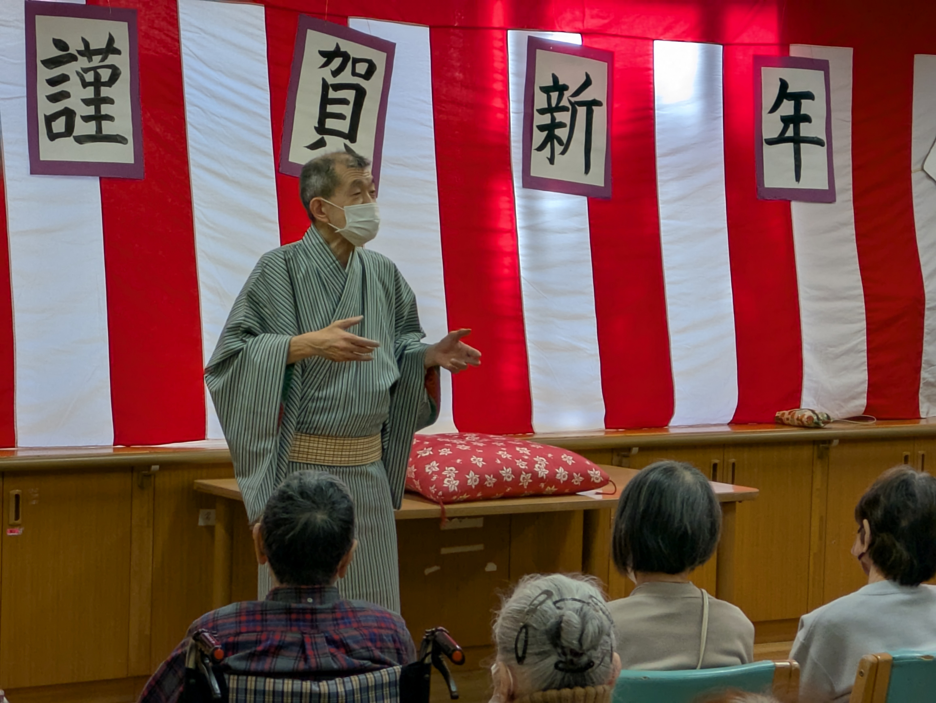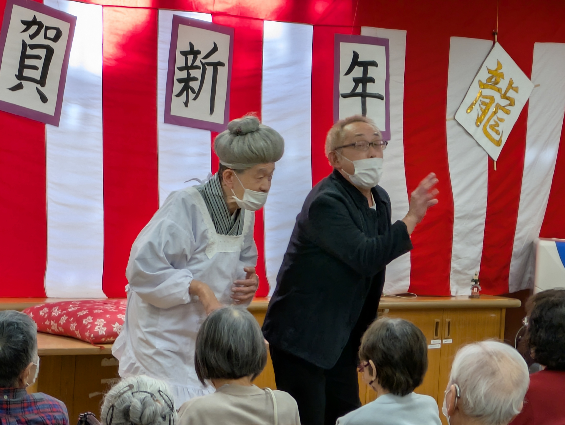 新年の初笑い企画(^^♪ということで、今回は、プロの謡曲師でもある I 職員による落語や、コント、漫才などをお楽しみいただきました!!