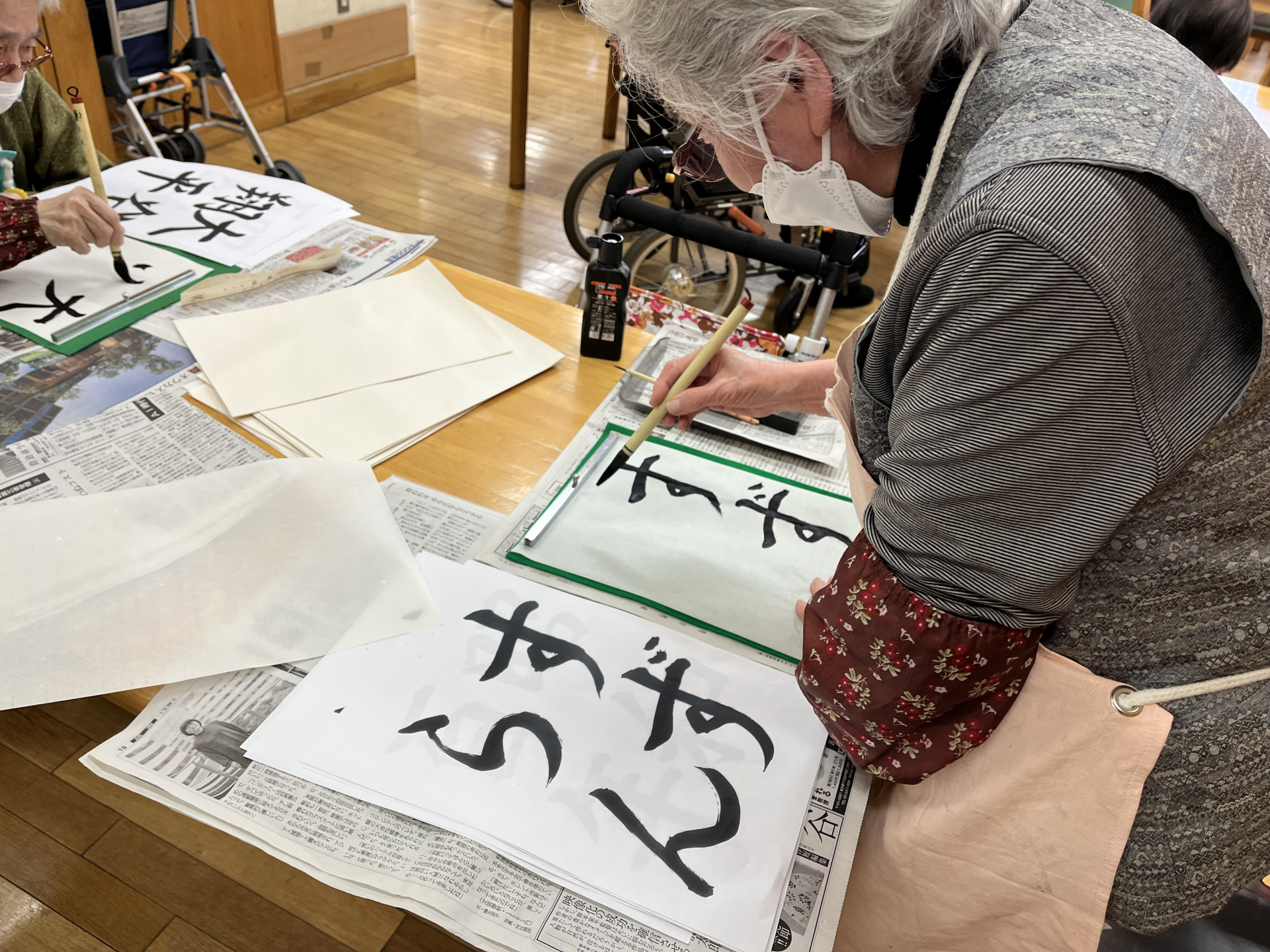 2025.04.30 活動報告 書道 Tweet シェアする 個別プログラム~書道~のご様子です。 お手本を見ながら一文字一文字を集中しながら書かれ、中には今話題の「大谷翔平」の字が! 最後には自信作を見せていただきました! 前の記事 2025.04.30 活動報告 棒体操 次の記事 2025.04.30 活動報告 ピアノ歌会 一覧へ戻る
