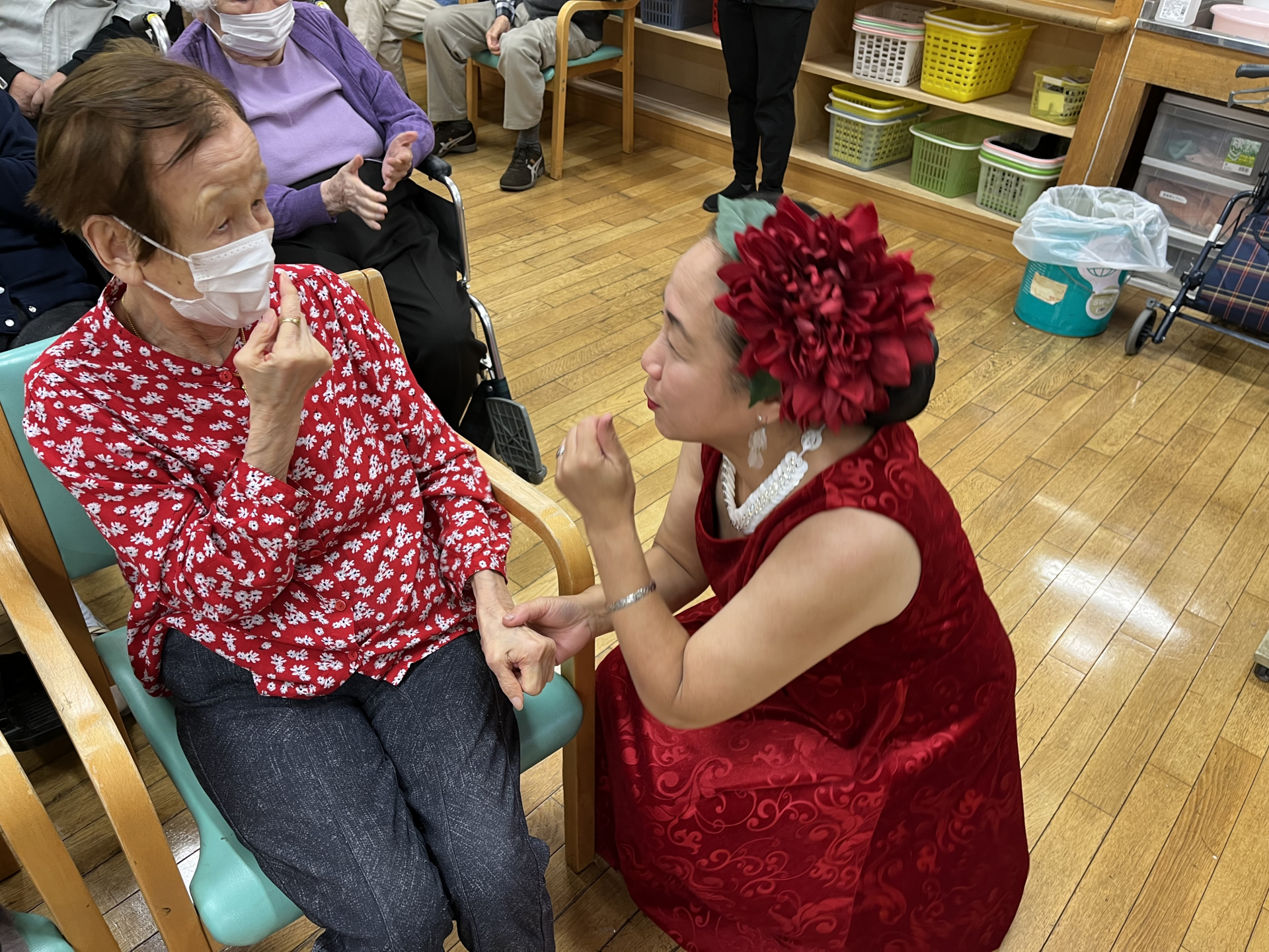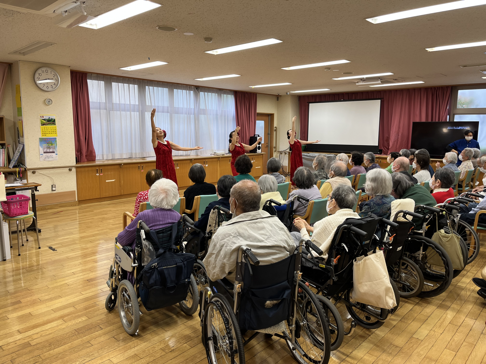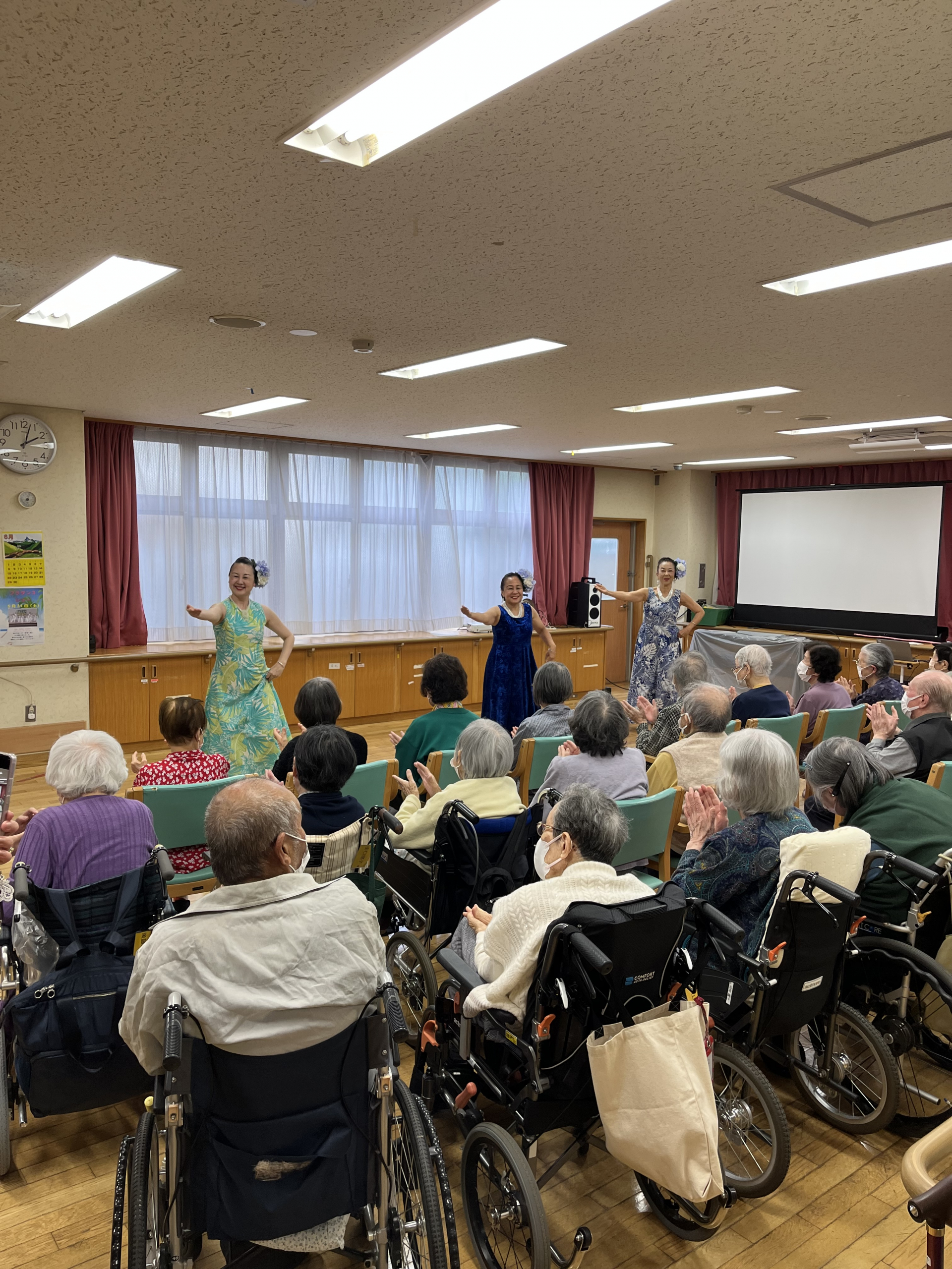 2025.05.31 活動報告 フラダンス Tweet シェアする 午後から「フラリノリノアーヌエヌエ」によるフラダンスショーを開催しました。 皆様素敵なダンスにくぎ付けになられていました! 最後には、ご利用者様とお話などをされ、皆様喜ばれていました! 前の記事 2025.06.02 活動報告 ジューンブライド 次の記事 2025.05.30 活動報告 ヘアカット 一覧へ戻る