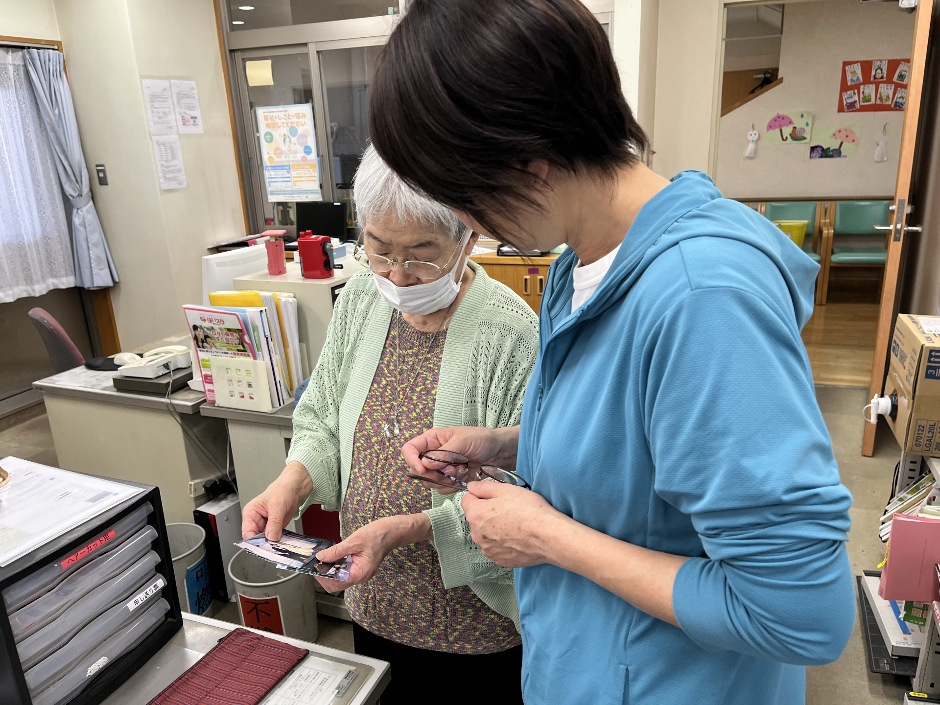 昼食後の空き時間、A様より職員へ娘様の結婚式の写真を見せに来てくださいました。