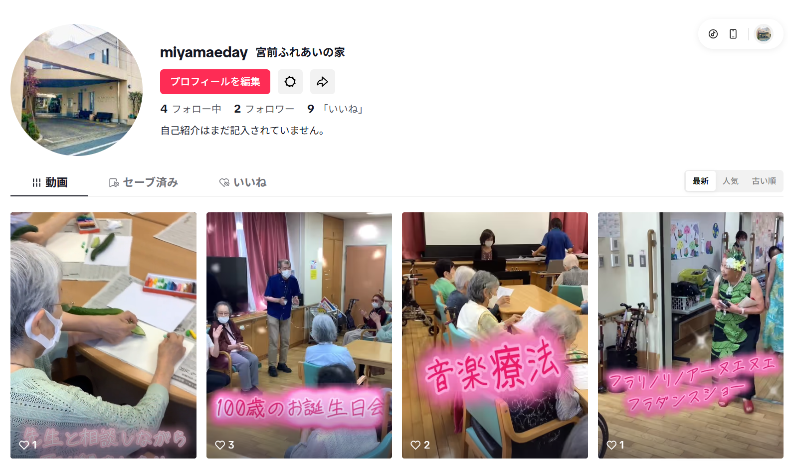2025.06.23 活動報告 【TIKTOK】始めました~ Tweet シェアする 宮前ふれあいの家!TIKTOKを始めました。 レクリエーションでのご様子などを掲載しておりますので是非ご覧下さいませ! 前の記事 2025.06.23 活動報告 買い物支援 次の記事 2025.06.21 活動報告 矢部職員~ホームページ開始! 一覧へ戻る