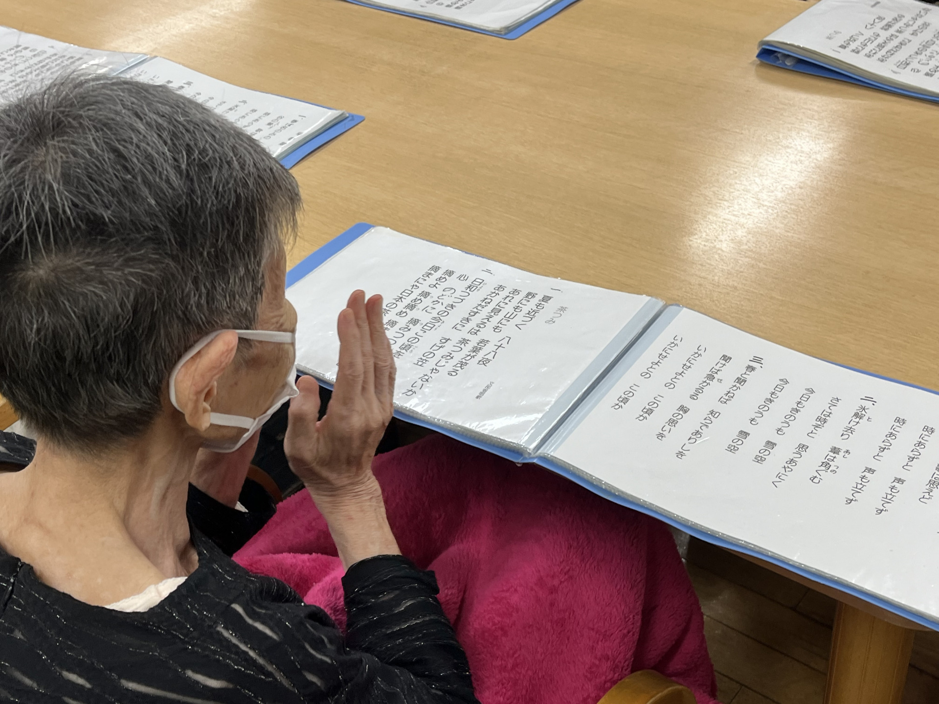 途中「幸せならてをたたこう」など歌を歌いながら手を叩くといった運動も取り入れながら皆様過ごされました。
