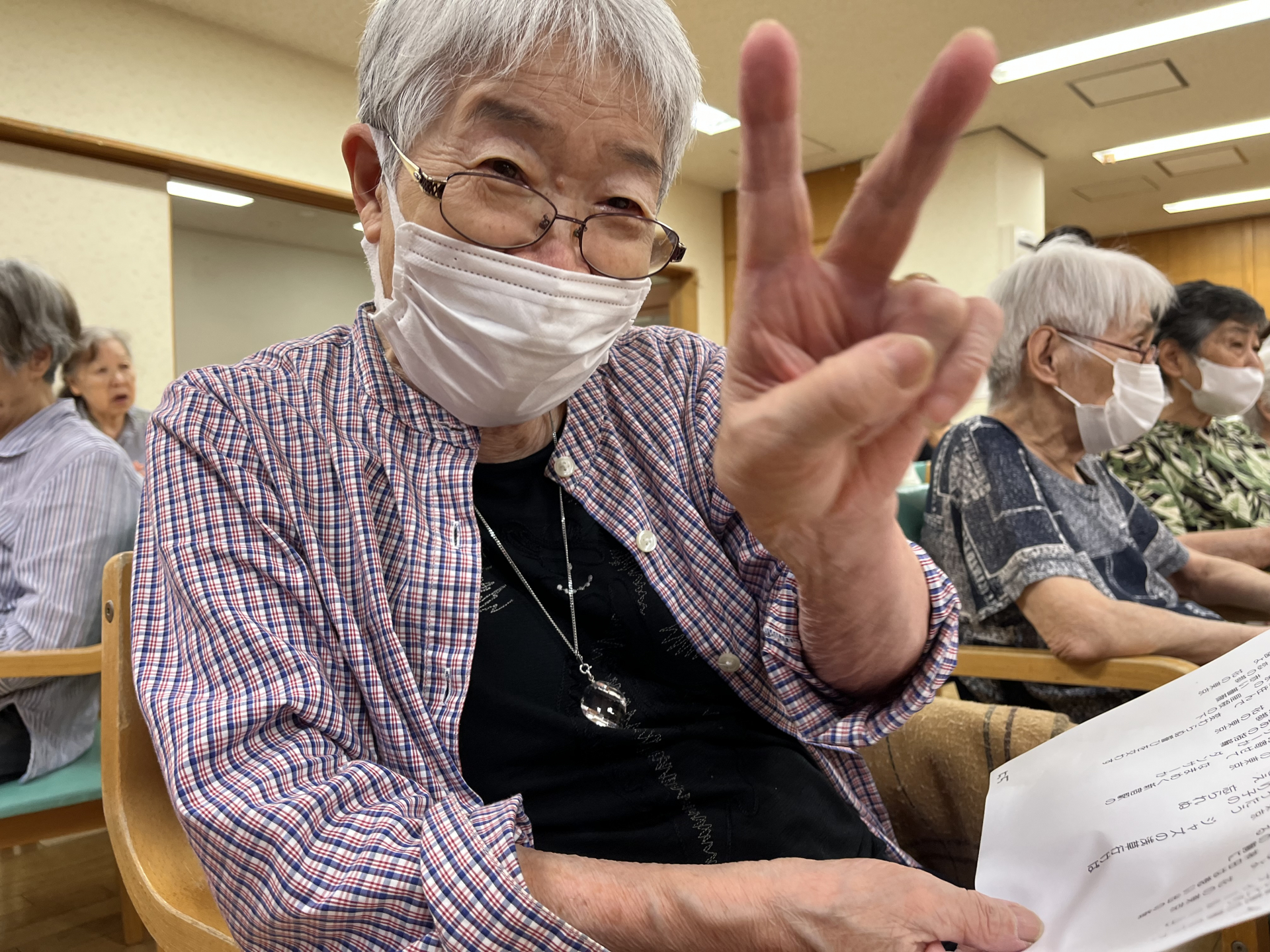 途中、手話をしながら歌を歌う脳トレーニングや、歌を歌うことで食べ物を呑み込む(嚥下機能)のトレーニングにもつながっております。