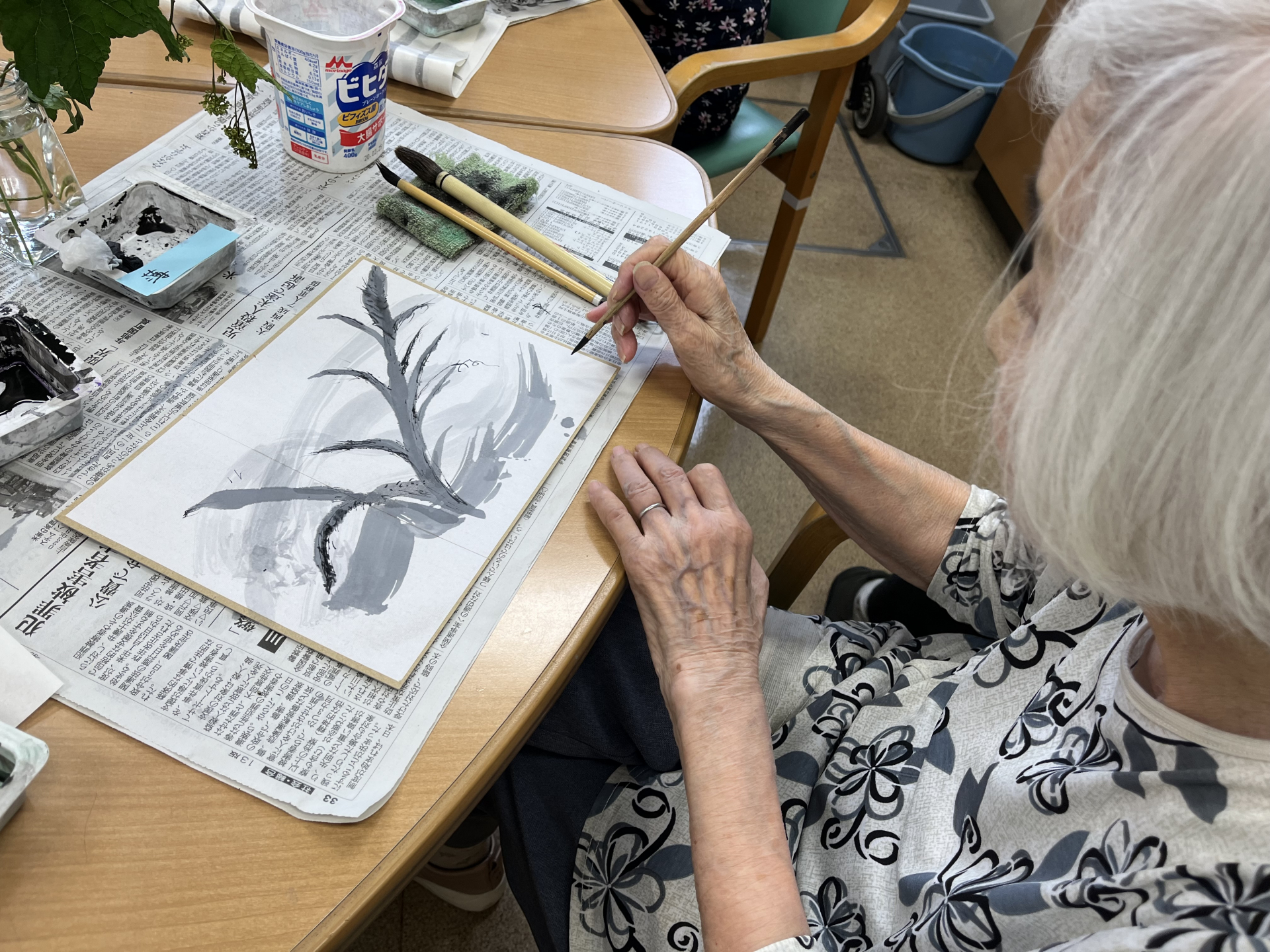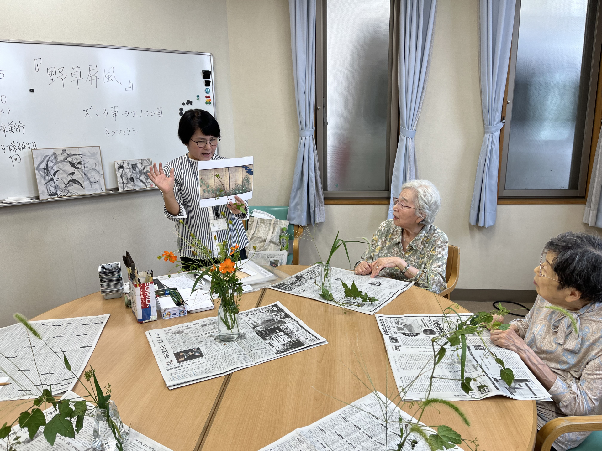 今月は「野草屏展」となり、野草の茎や葉のもつ動きを感じながら、墨で表現するプログラムとなります。