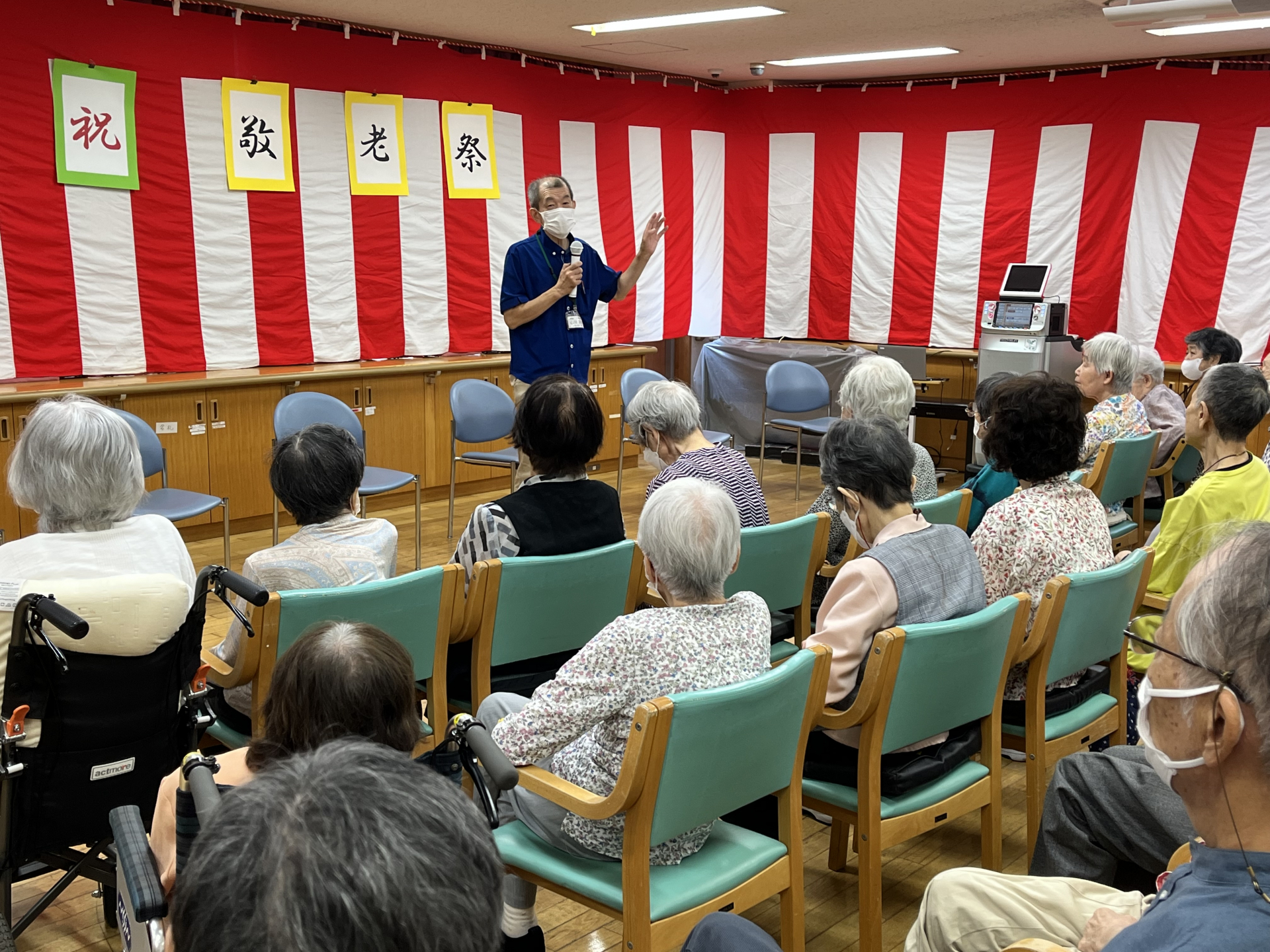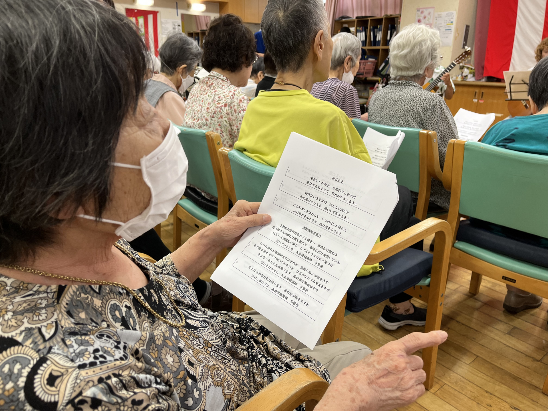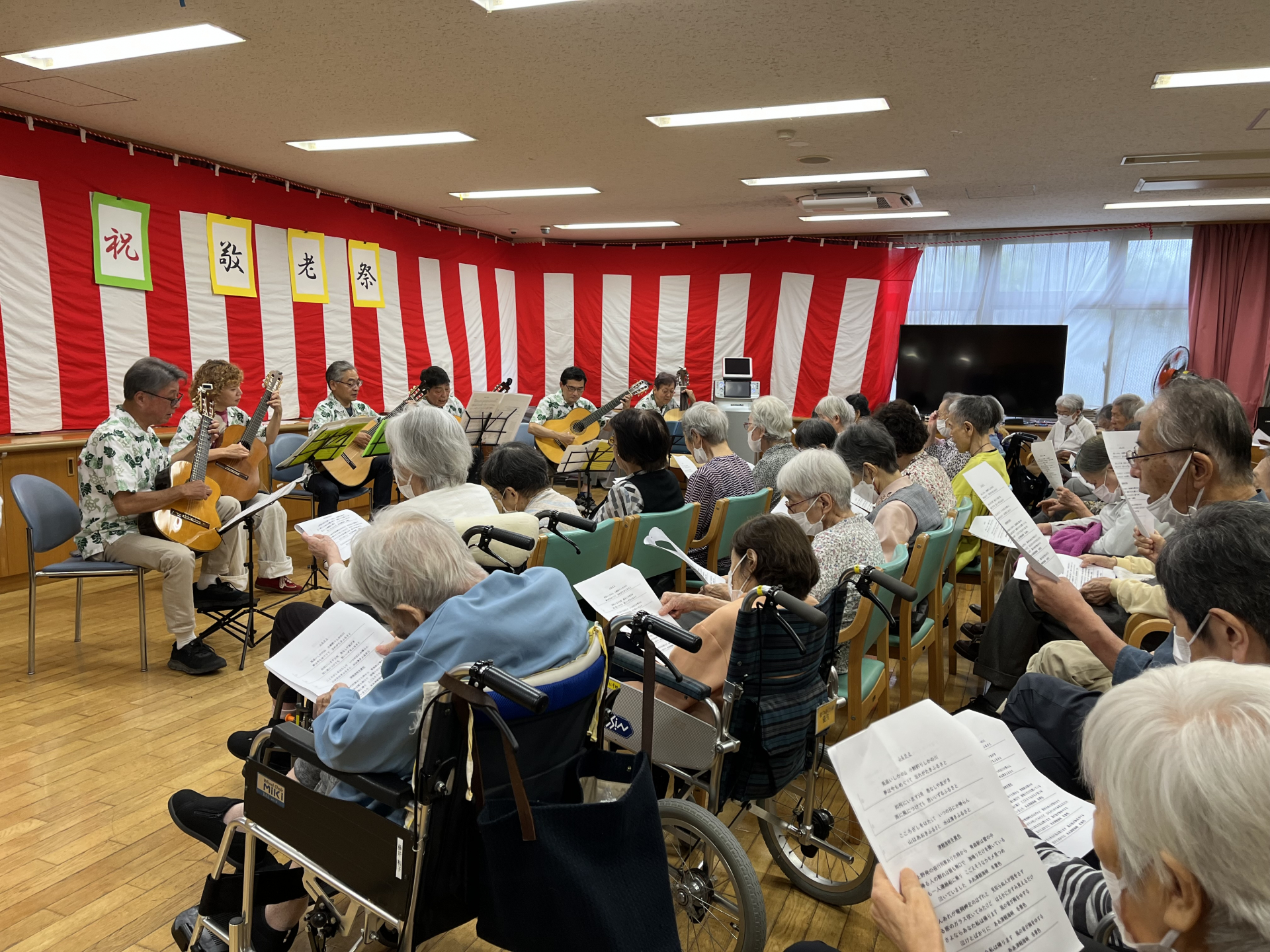 2025.09.13 活動報告 敬老祭 Tweet シェアする 午後から「敬老祭」を開催。 ギターオーケストラグループ「RUF19 るふナインティーン」のギター演奏会に参加されました。 「ふるさと」や「津軽海峡冬景色」などをギターの音色に合わせて歌を歌われました。 前の記事 2025.09.13 活動報告 敬老祭のおやつ 次の記事 2025.09.13 活動報告 敬老祭の昼食 一覧へ戻る