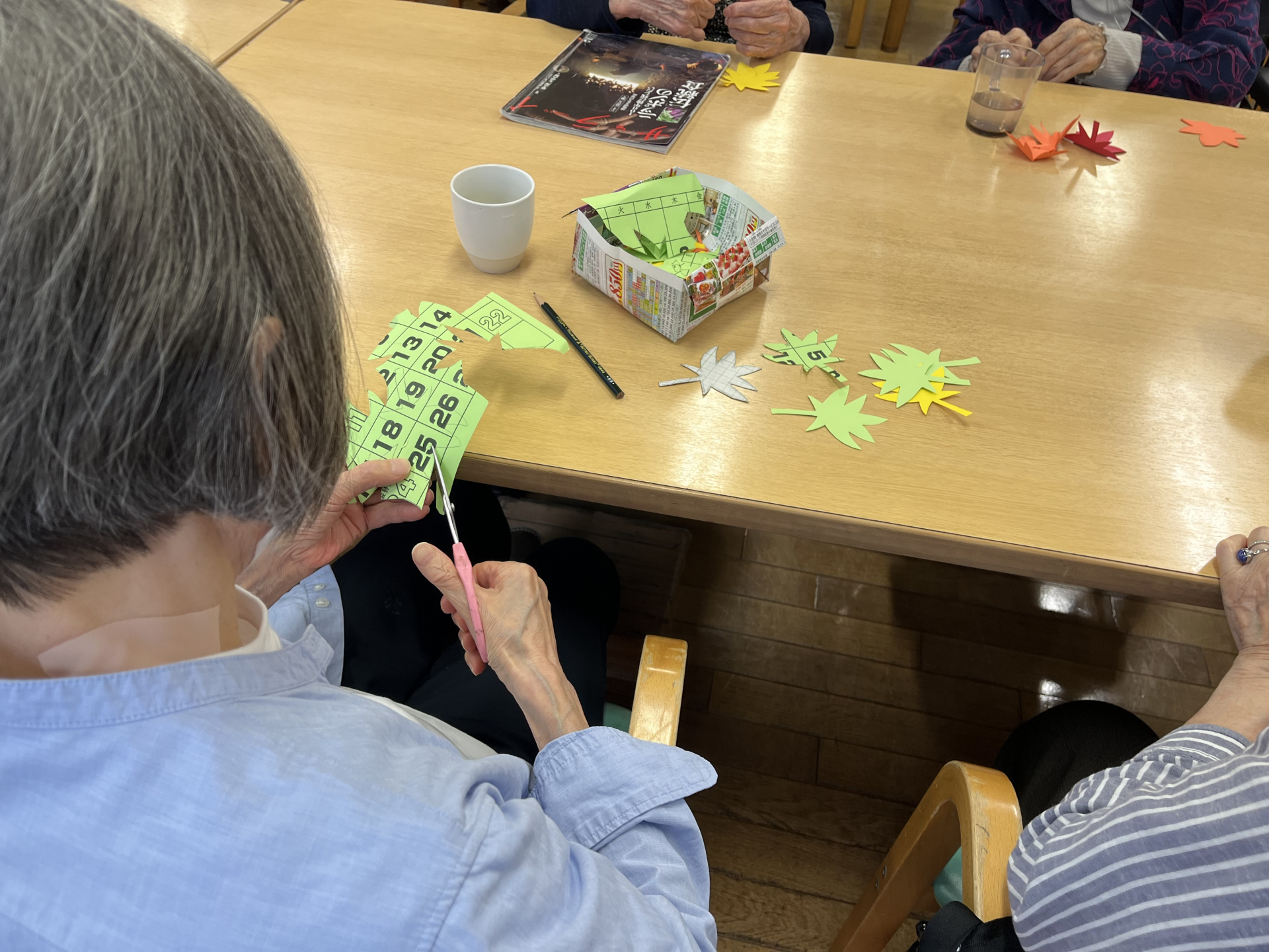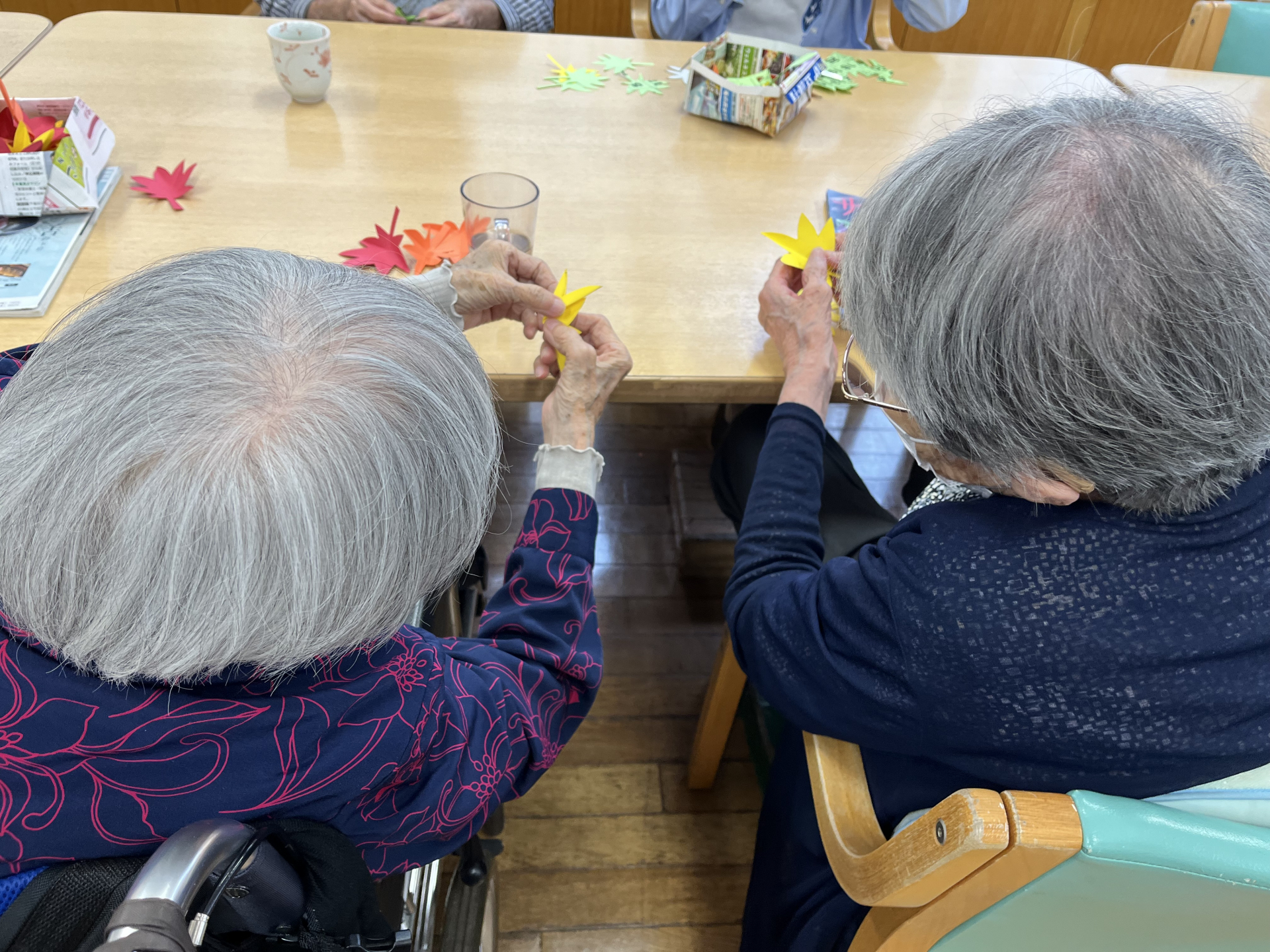 紅葉の折り目をつける際には、「やり方はこうかしら?」「こうするのよ」と笑顔で協力されておりました。