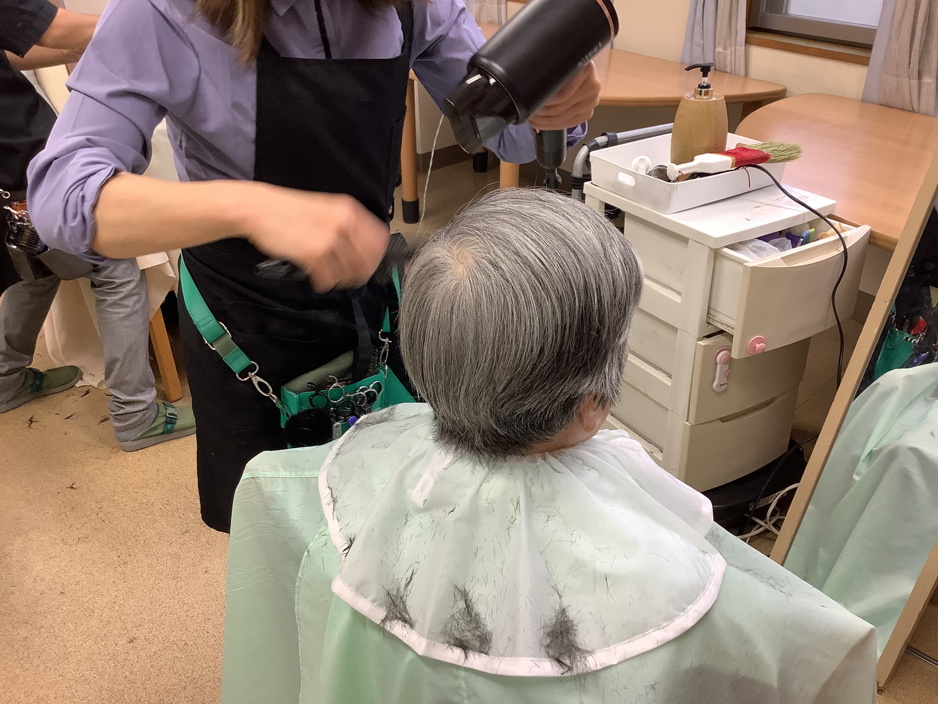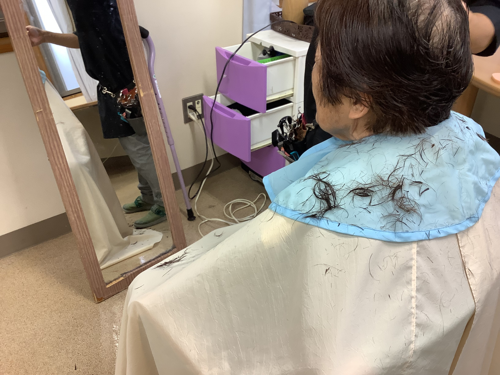 ヘアカットをずっと楽しみにされている方も結構いらっしゃるようで、利用者様にとって一大イベントなんです🙍♀️