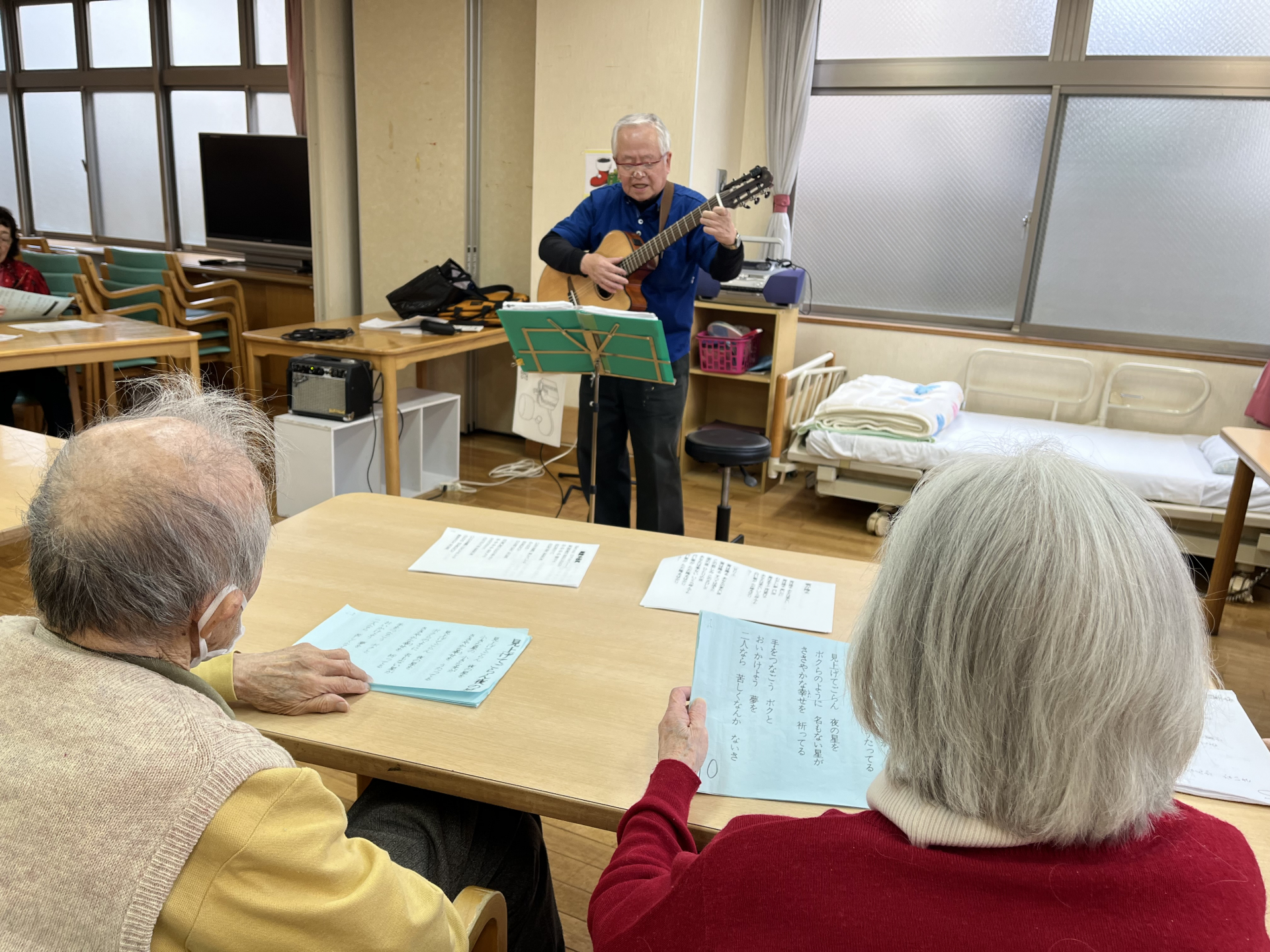 2025.12.27 活動報告 ギターの会 Tweet シェアする 午後からは「ギターの会」を開催 冬の季節にちなんだ曲をはじめ「上を向いて歩こう」などのヒット曲をギターの音色に合わせて歌を歌われました。 前の記事 2025.12.27 活動報告 正月飾り 次の記事 2025.12.26 活動報告 ピアノの会 一覧へ戻る