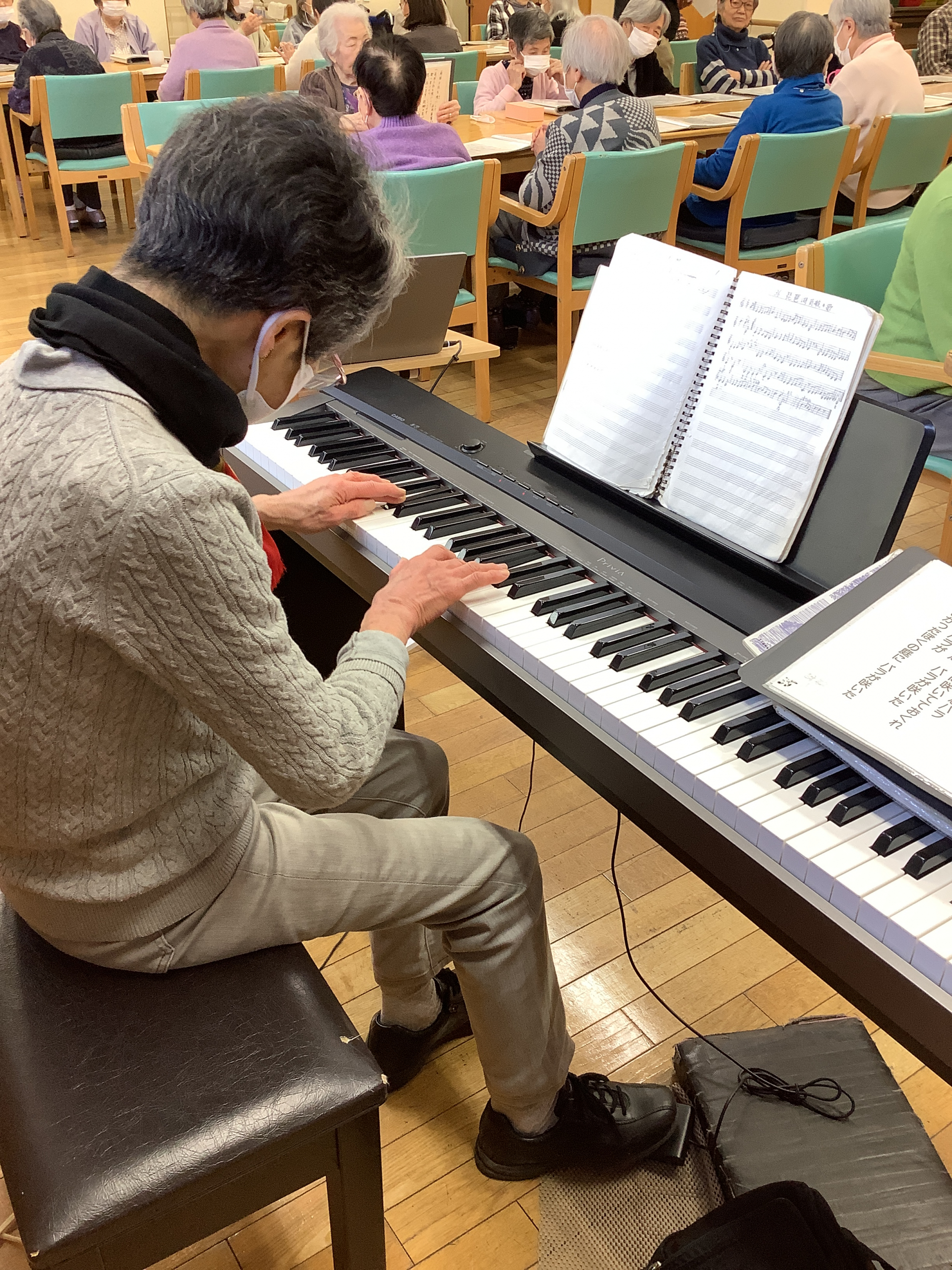 2026.01.15 活動報告 ピアノ歌会 Tweet シェアする 午前中はピアノ歌会を開催! 「東京ラプソディー」や「リンゴの唄」などの人気曲をピアノの音色に合わせて歌を歌われました! 皆様大きな声で歌を歌ったことで、嚥下機能の維持向上に努められております。 前の記事 2026.01.15 活動報告 臨床美術~描き初め~ 次の記事 2026.01.13 活動報告 本日は音楽療法の先生にお越しいただきました🎵 一覧へ戻る