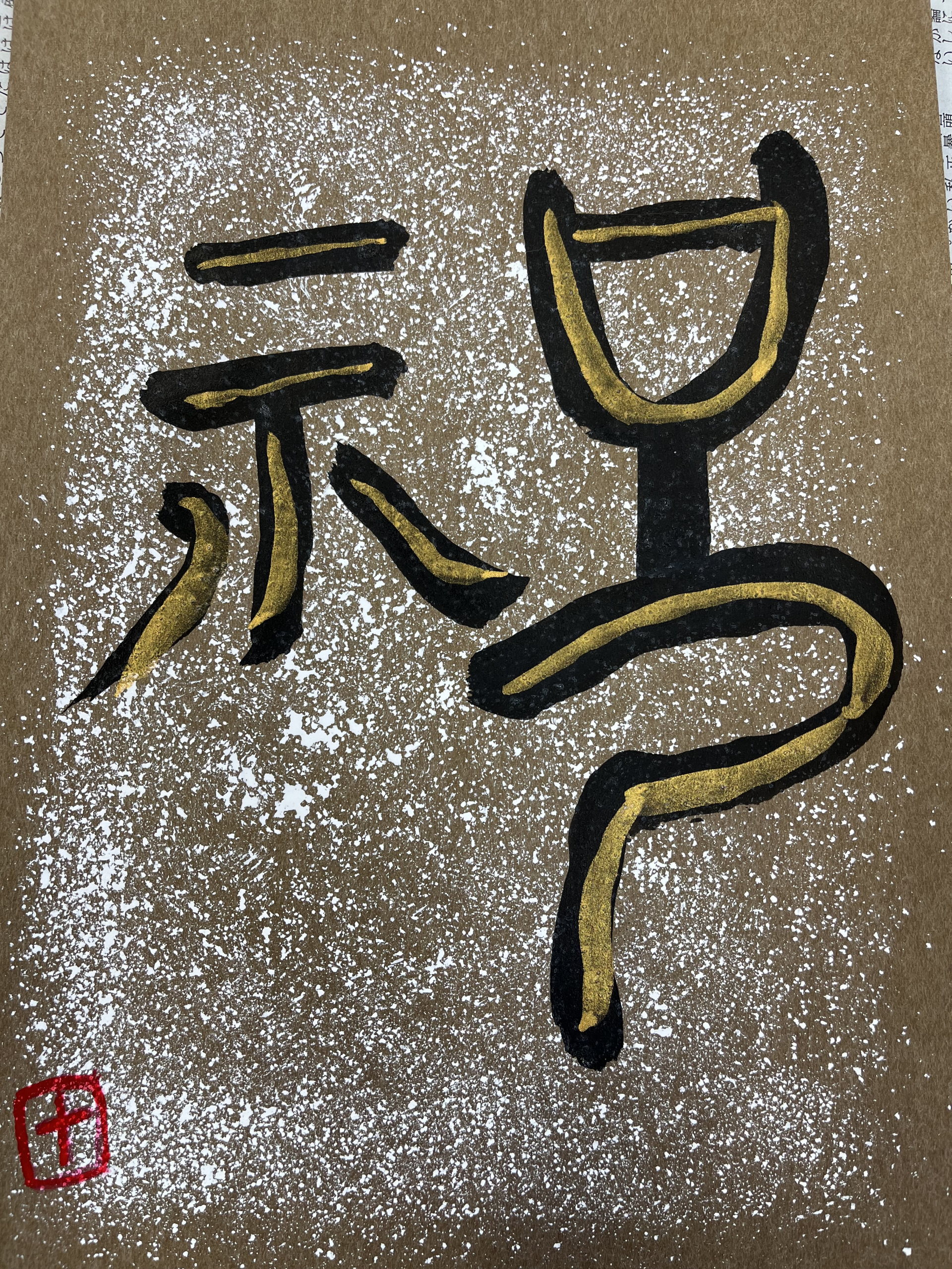甲骨文字から受けるイメージを自由に広げ、胡粉・墨・金粉など、日本古来の画材を組み合わせ表現するプログラムとなっております。