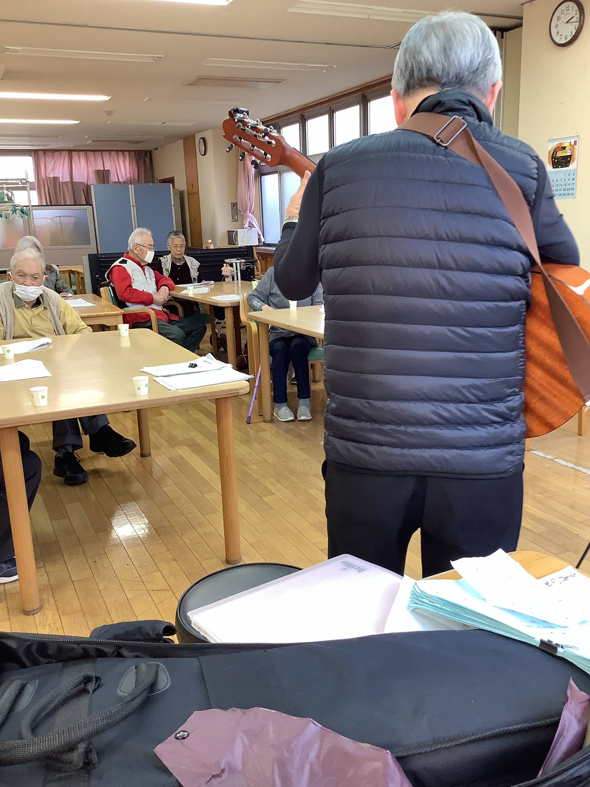 今回は、いつもと変わりエレキギターとウクレレのボランティアさんもお招きし、皆様とギターの音色に合わせて歌を歌われました。