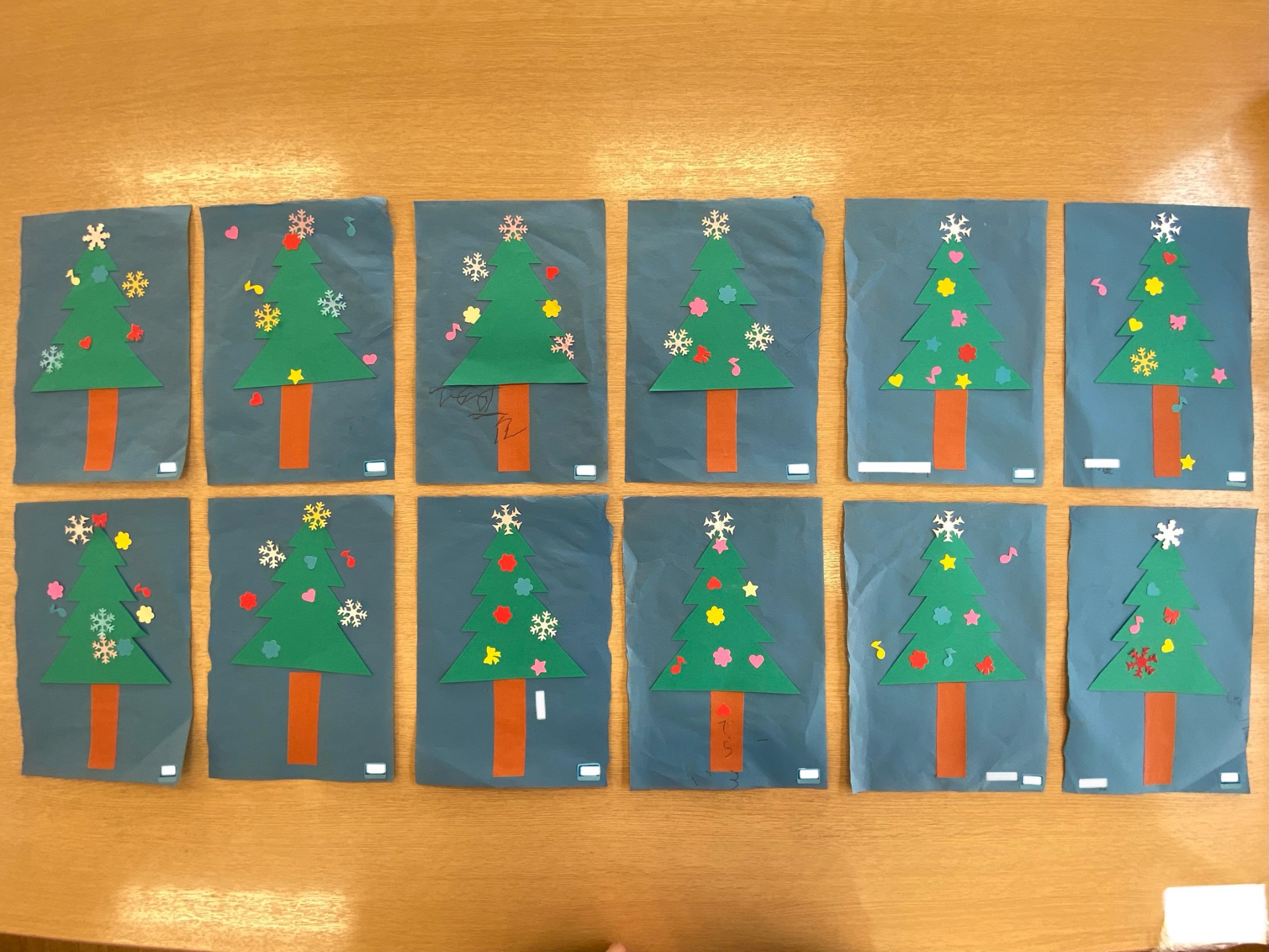 本日の午後は、色画用紙を使って「クリスマスツリー🎄」の壁飾りを作りました。