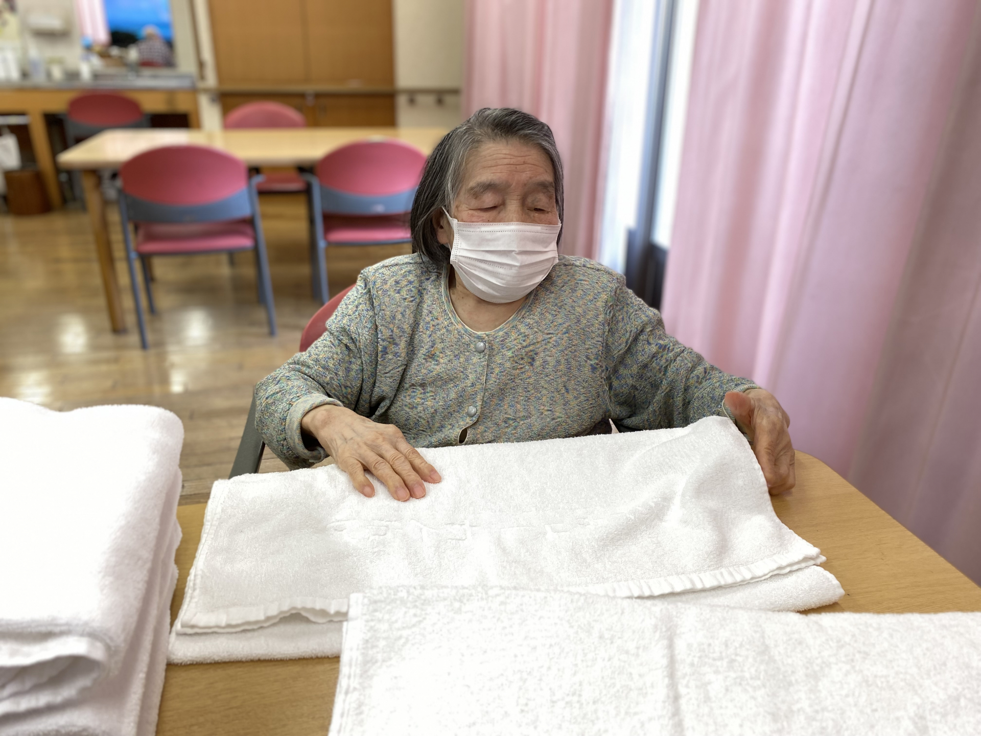 2025.04.09 活動報告 お帰り前の時間~入浴用のタオル畳み! Tweet シェアする 本日、お帰り前の時間にS様が入浴で使用するタオル畳みをお手伝いして下さいました。 S様!いつもありがとうございます。^^ ムック 前の記事 2025.04.10 活動報告 朝のプログラム前のご様子~ 次の記事 2025.04.09 活動報告 午後のプログラムのご様子〜 一覧へ戻る