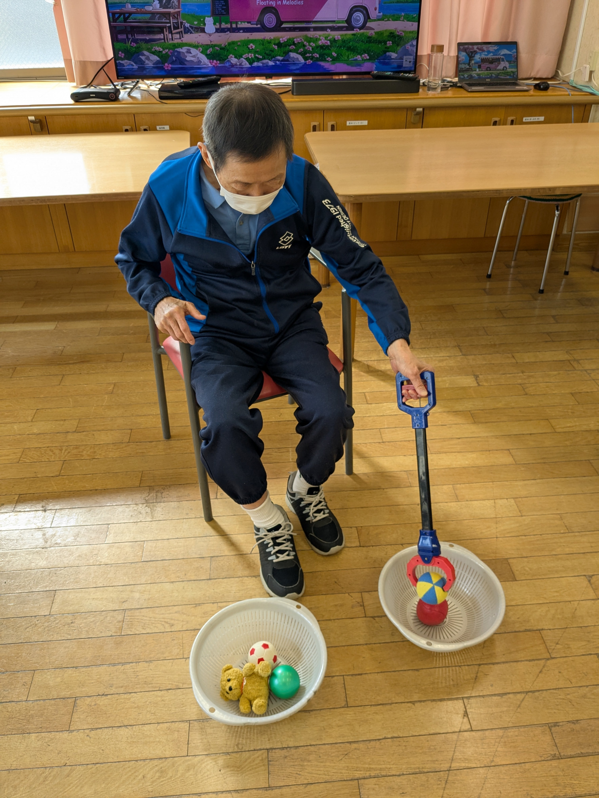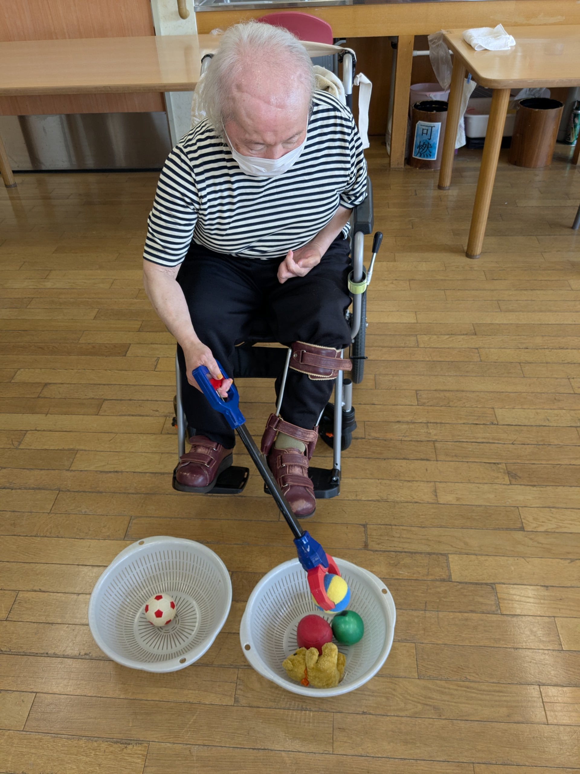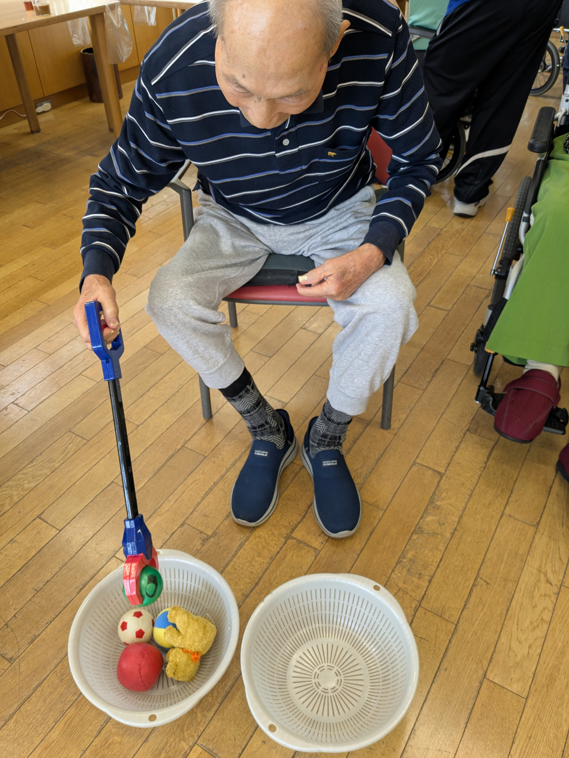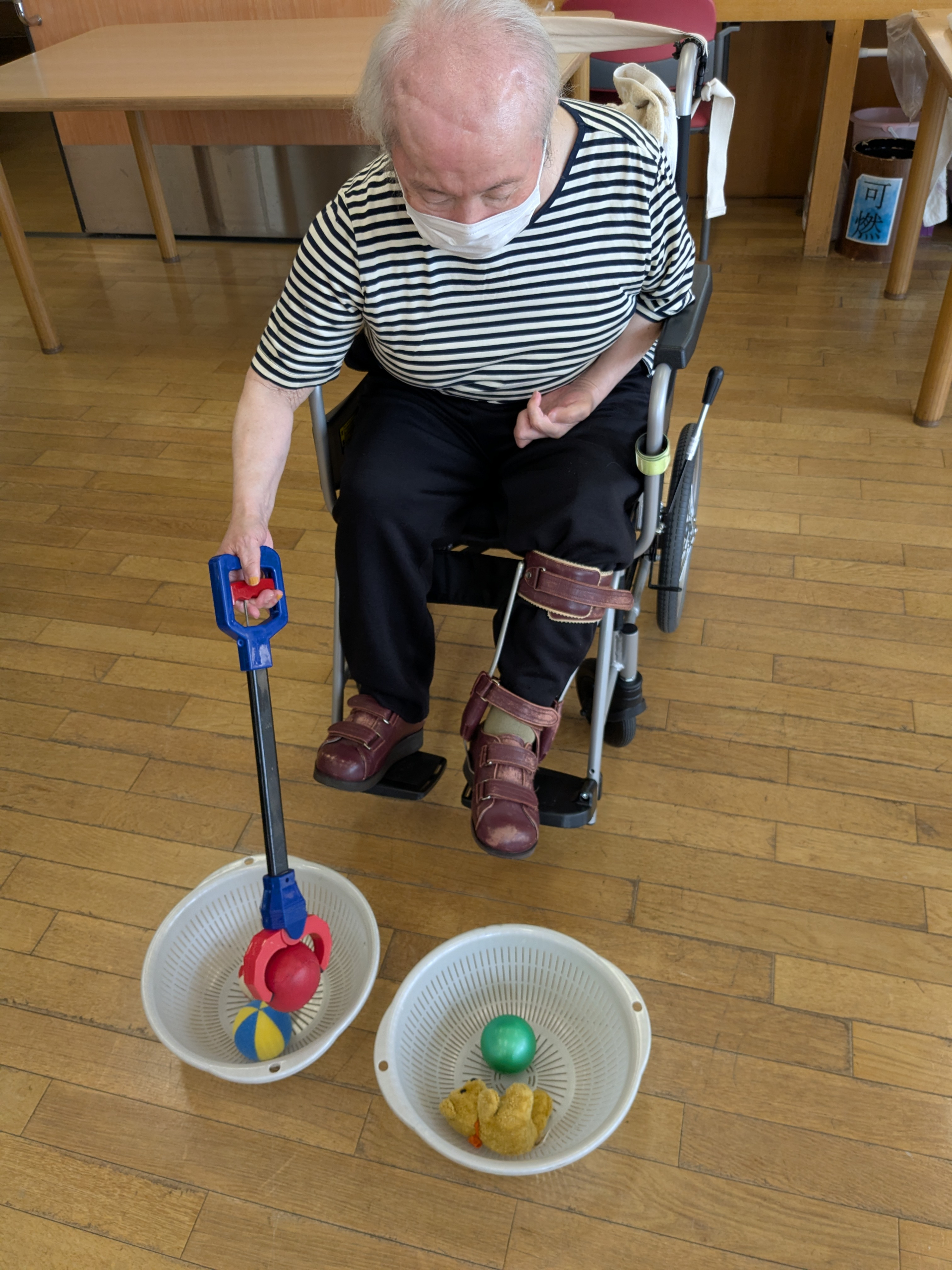 小物を籠から籠へ移動させるレクリエーションを行いました!